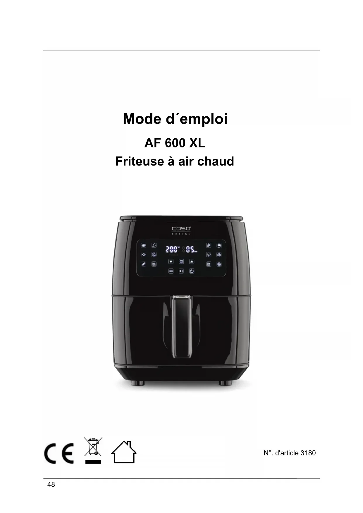 Retrouvez gratuitement la notice de l'appareil AF 600 XL CASO au format PDF.