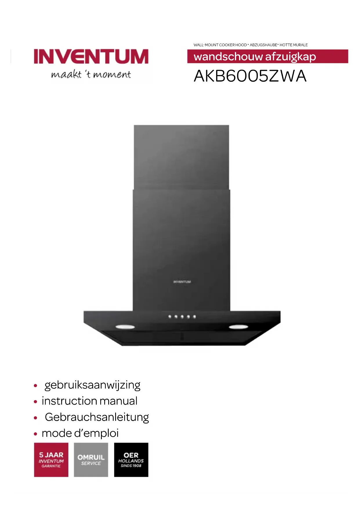 AKB6005ZWA - Hotte INVENTUM - Notice d'utilisation et mode d'emploi gratuit
