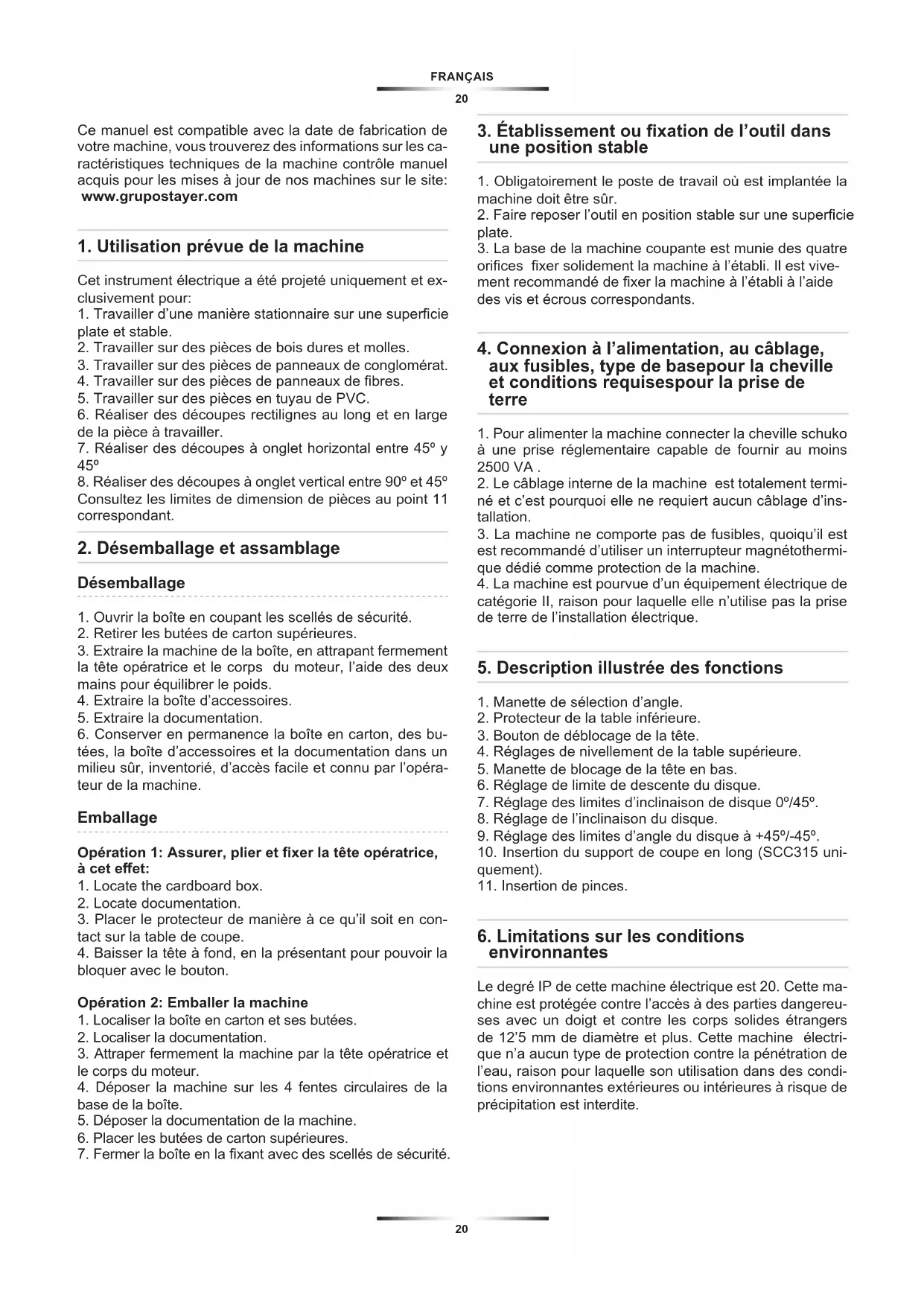 Ce manuel est compatible avec la date de fabrication de votre machine, vous trouverez des informations sur les ca- ractéristiques techniques de la machine contrôle manuel acquis pour les mises à jour de nos machines sur le site: www.grupostayer.com