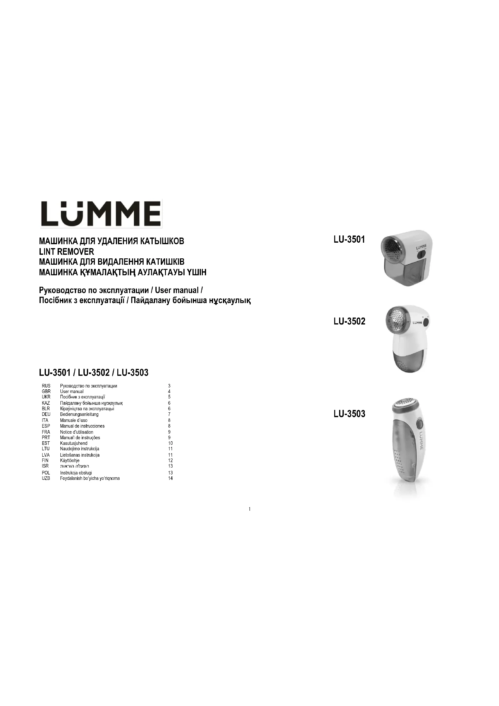 LU3503 - Rasoir anti-bouloches LUMME - Notice d'utilisation et mode d'emploi gratuit