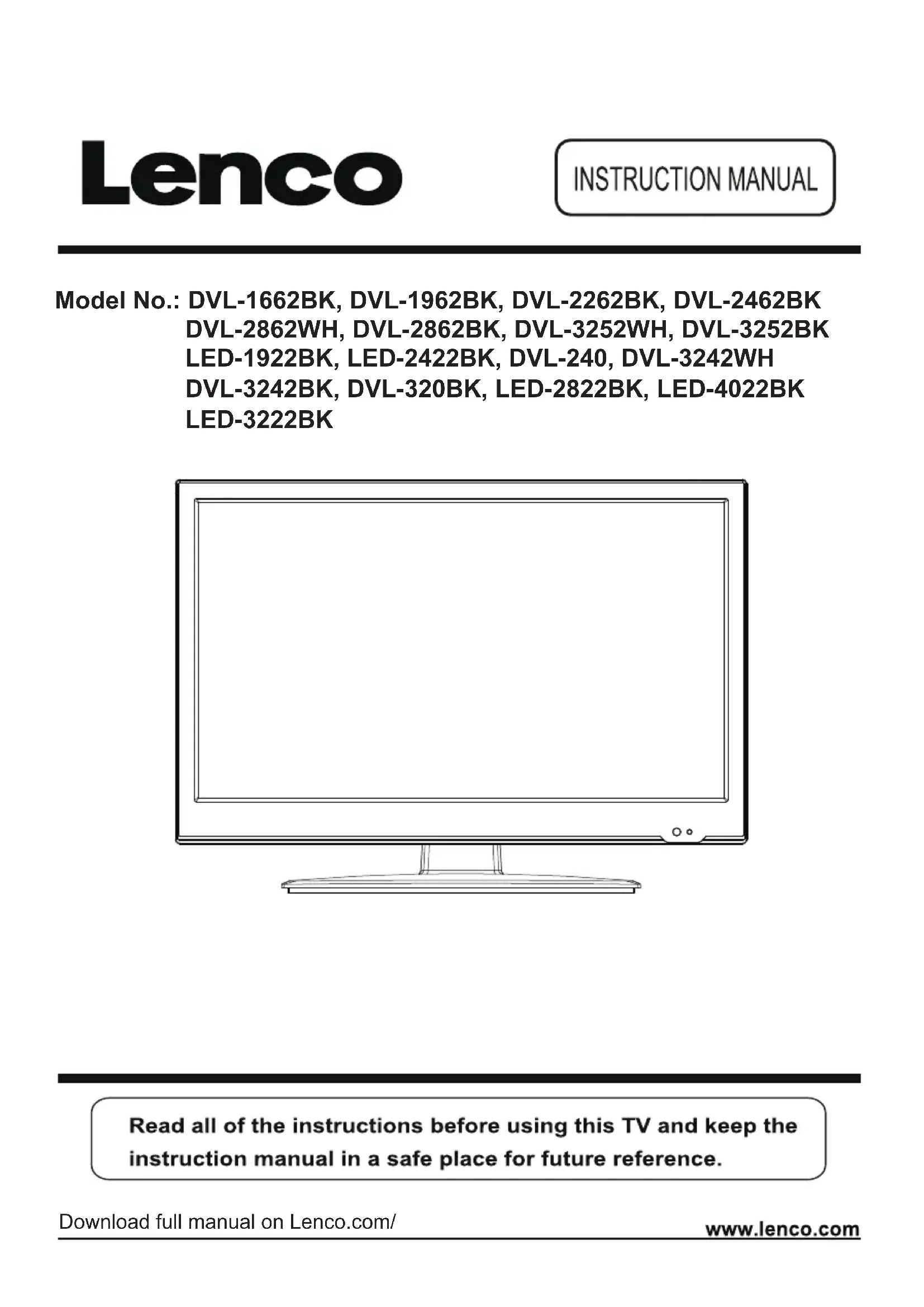 Téléchargez la notice de votre Téléviseur au format PDF gratuitement ! Retrouvez votre notice DVL1962BK - LENCO et reprennez votre appareil électronique en main. Sur cette page sont publiés tous les documents nécessaires à l'utilisation de votre appareil DVL1962BK de la marque LENCO.