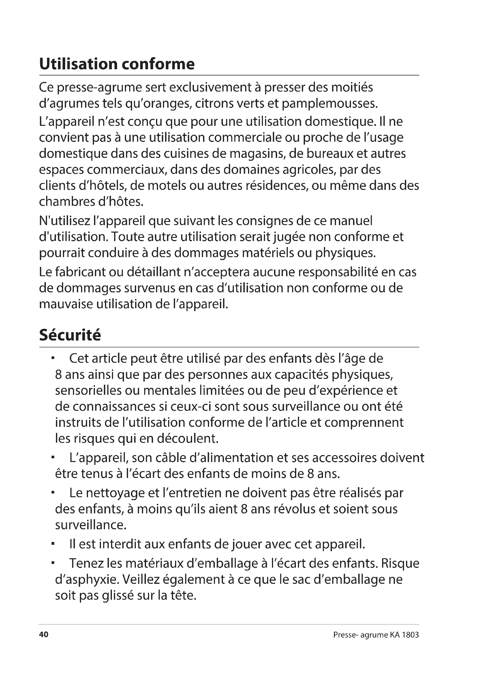 Utilisation conforme 40