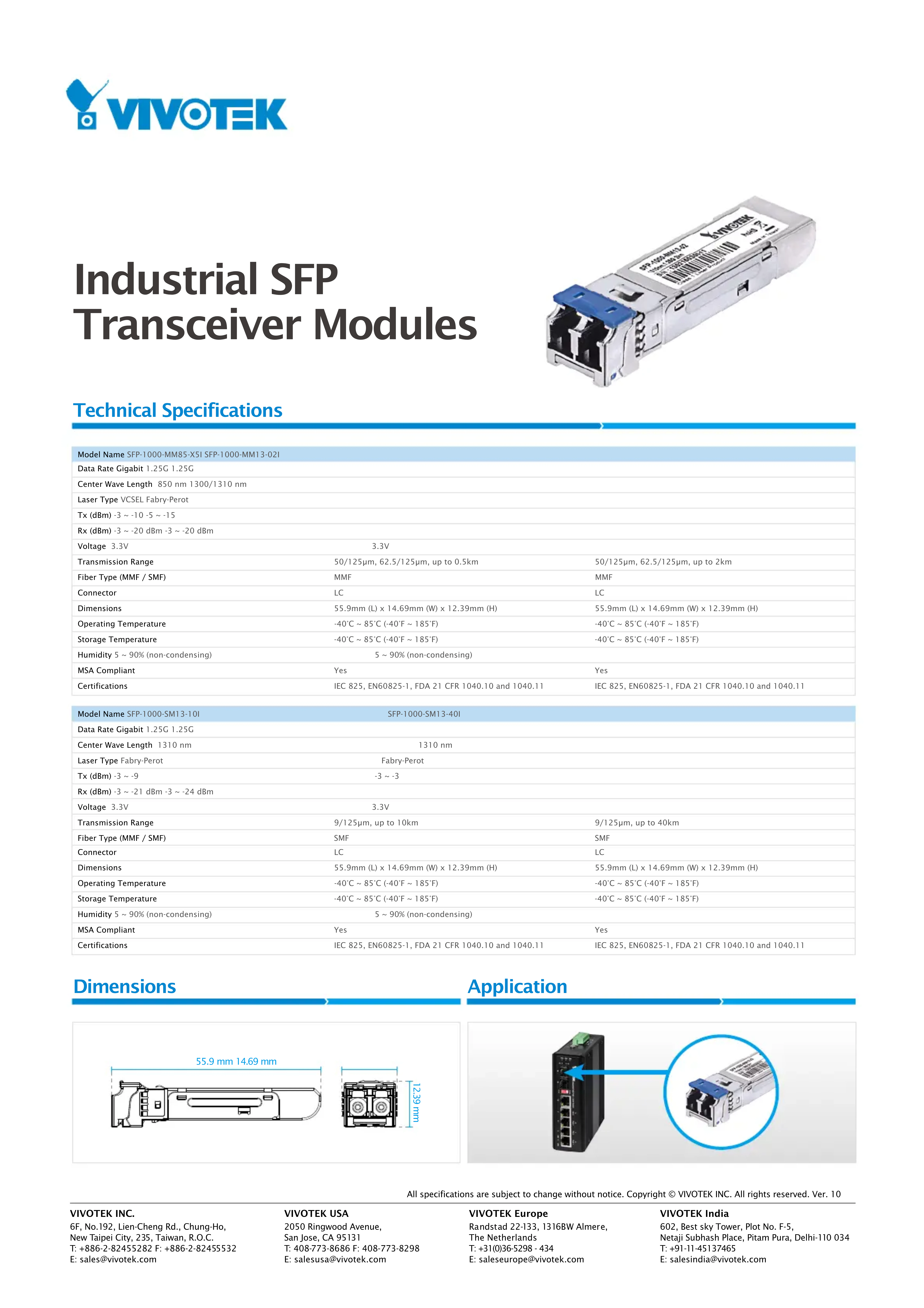 SFP1000SM1310I - Module de transmission optique Vivotek - Notice d'utilisation et mode d'emploi gratuit