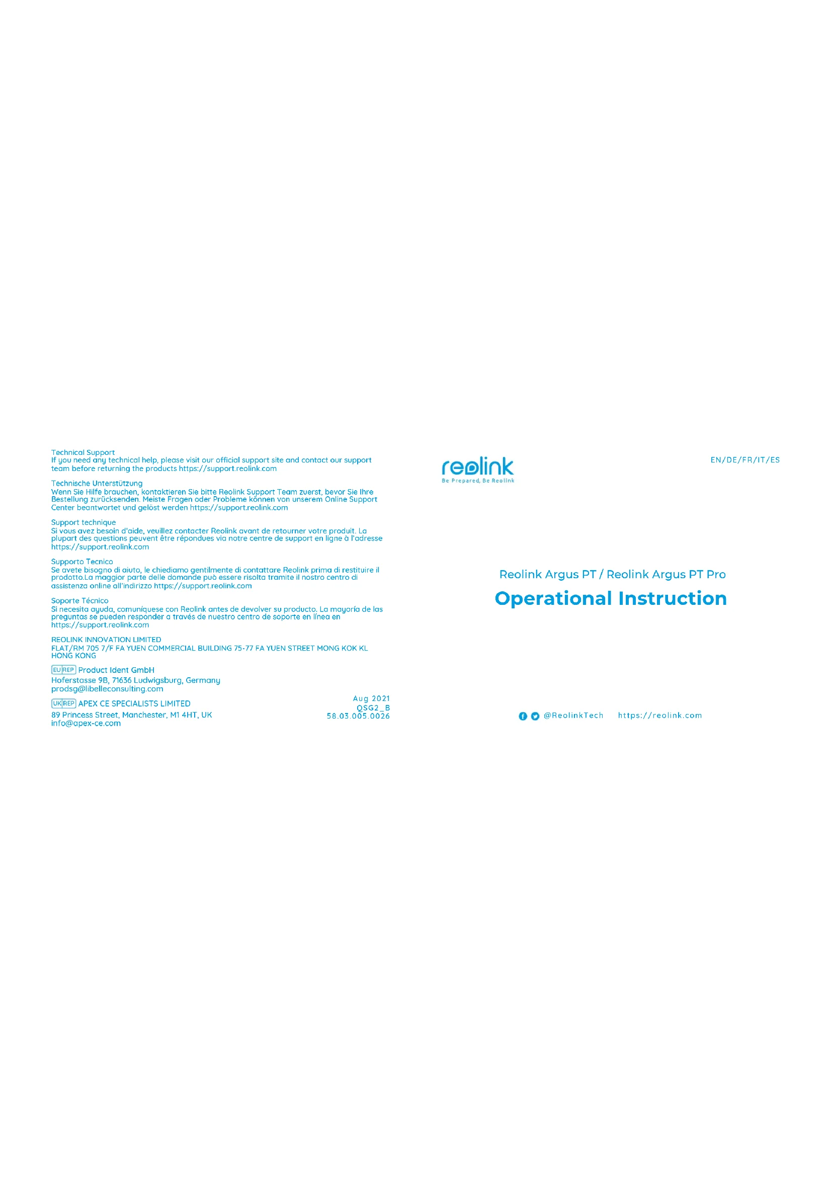 Retrouvez gratuitement la notice de l'appareil Argus PT Pro REOLINK au format PDF.