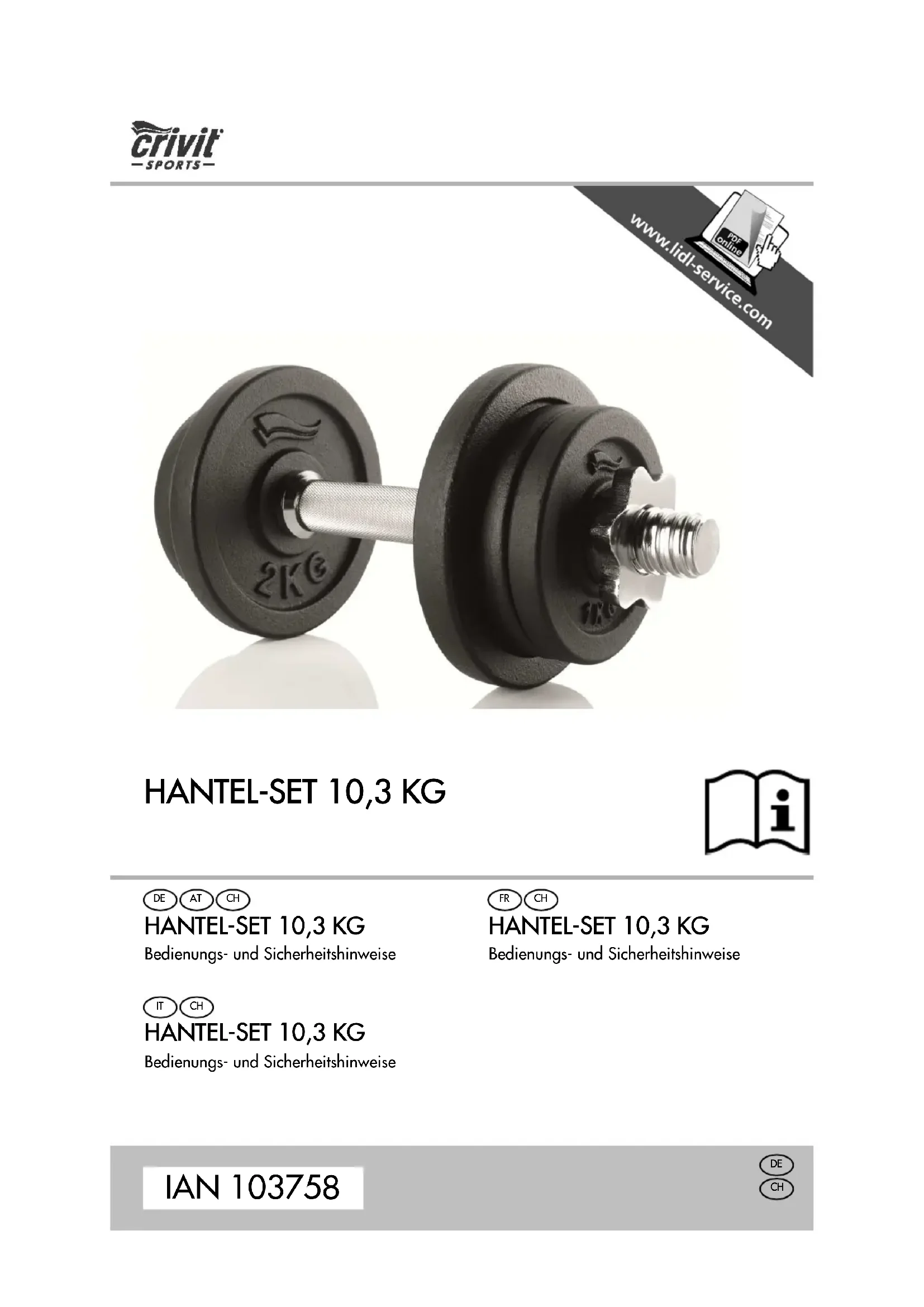 d'exercice de sorte que le triceps soit entraîné isolé- ment. (C) Pectoraux - Pull-over Allongez-vous sur le dos sur un banc plat (veillez à ce que celui-ci soit stable) de manière à ce que les épaules reposent bien sur le banc. Saisissez l'haltère court des deux mains (par ex. par l'un des disques d’haltère) et tenez-le verticalement au-dessus de votre poitrine avec les bras légèrement fléchis. Déplacez ensuite l'haltère vers l'arrière au dessus de la tête. Levez alors le poids à nouveau et reprenez la position de départ. (D) Pectoraux - Ecarté-couché ou butterfly Allongez-vous sur le dos sur un banc plat (veillez à ce que celui-ci soit stable) et posez vos pieds au sol de chaque côté du banc. Prenez maintenant un haltère court dans chaque main et tenez-les avec les bras légè- rement fléchis au-dessus de votre poitrine. Abaissez maintenant les haltères latéralement jusqu'à la hauteur des épaules. Levez ensuite à nouveau les poids et re- prenez la position de départ. (E) Dos Prenez appui avec une main sur un banc ou une chaise. Prenez l'haltère court dans l'autre main et lais- sez votre bras pendre vers le bas. Tirez maintenant le poids de manière lente et contrôlée en direction de la poitrine. Le dos reste droit et le torse tendu. Abaissez ensuite le poids lentement. Commencez cet exercice avec des poids faibles. (F) Épaules - Élévations latérales Cet exercice peut être exécuté debout ou assis. Saisis- sez les haltères avec une prise par le haut et tirez les omoplates vers l'arrière. Les coudes sont légèrement fléchis. Levez les bras sur les côtés jusqu'à hauteur des épaules. Abaissez ensuite le poids jusqu’à la position de départ. (G) Épaules - Élévations frontales Cet exercice peut être exécuté debout ou assis. Saisis- sez les haltères avec une prise par le haut et tirez les omoplates vers l'arrière. Les coudes sont légèrement fléchis. Levez les bras vers l'avant jusqu'à hauteur des épaules. Redescendez ensuite Abaissez ensuite le poids jusqu’à à la position de départ. (H) Jambes Laissez pendre souplement de chaque côté les bras tenant les poids. Avancez de manière contrôlée avec un grand pas en avant (fentes avant). Veillez à ce que le genou reste constamment au-dessus du pied et à ce que le dos soit droit. Redressez-vous à nouveau. Chan- gez de jambe. Garantie Chère cliente, cher client, Vous recevez sur cet appareil une garantie de 3 ans à compter de la date d'achat. En de défauts de ce pro- duit, vous disposez de droits légaux à l'encontre du vendeur du produit. Ces droits légaux ne sont pas limi- tés par notre garantie présentée ci-après. Conditions de garantie La période de garantie prend effet à la date d'achat. Veuillez conserver soigneusement l'original du ticket de caisse. Ce document est requis en tant que preuve de l'achat. Si un défaut de fabrication ou de matériau survient dans un délai de deux ans à compter de la date d'achat de ce produit, celui-ci sera réparé ou remplacé - à notre choix - gratuitement par nos soins Cette pres- tation de garantie présuppose que l'appareil défec- tueux et le justificatif d'achat (ticket de caisse) soit pré- senté dans le délai imparti et que soit brièvement décrit par écrit la nature du défaut et la date à laquelle il est survenu. Si le défaut est couvert par notre garantie, vous rece- vrez en retour le produit réparé ou un produit neuf. La réparation ou le remplacement du produit ne donne pas lieu à une nouvelle période de garantie. Étendue de la garantie L'appareil a été produit avec soin conformément à des directives qualité strictes et a été consciencieusement vérifié avant la livraison. La garantie est applicable en cas de vice de matériau ou de fabrication. La garantie ne s'étend pas aux pièces du produit qui sont soumises à une usure nor- male et peuvent être de ce fait considérées comme pièces d'usure. Cette garantie est annulée si le produit a été endom- magé, n'a pas été utilisé de manière correcte ou n'a pas été entretenu. Pour utiliser le produit de manière conforme, il est nécessaire de respecter strictement toutes les consignes figurant dans le mode d'emploi. Il convient d'éviter impérativement les utilisations et ma- niements que le mode d'emploi déconseille ou qui font l'objet d'avertissements.FR/