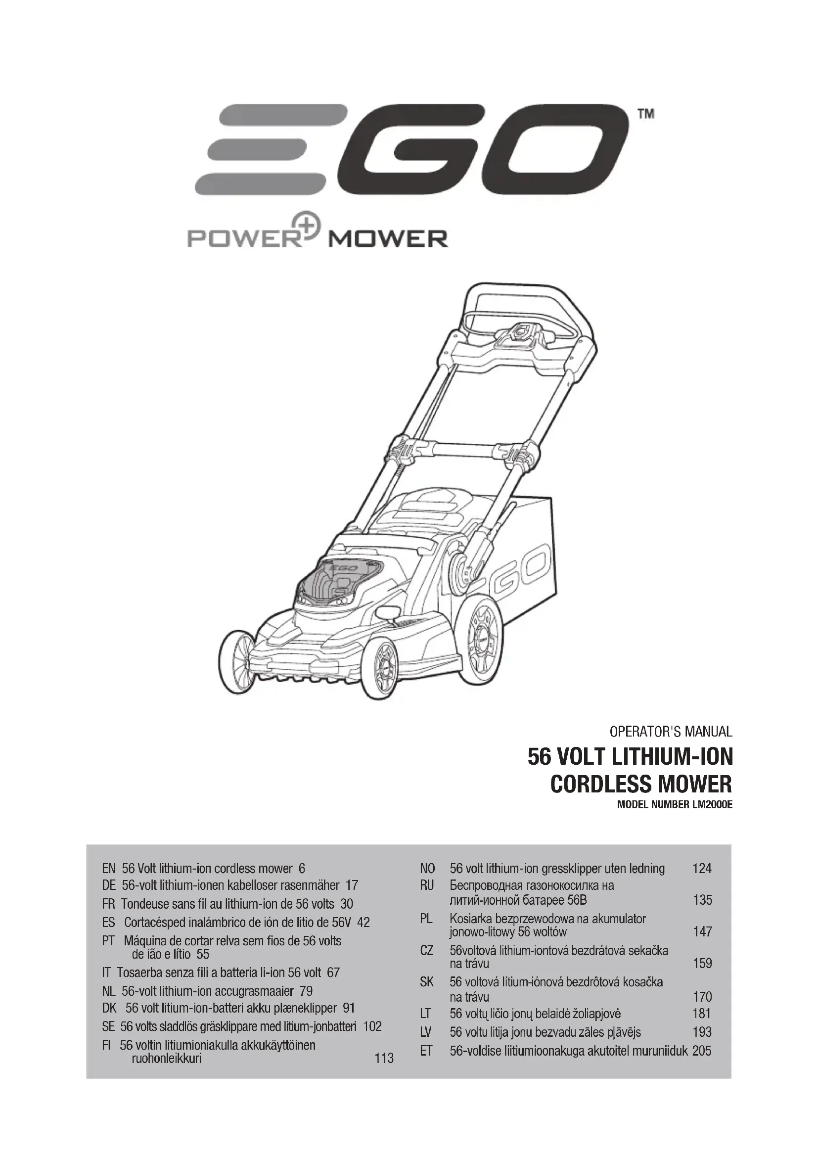 LM2000E - Tondeuse à gazon EGO - Notice d'utilisation et mode d'emploi gratuit