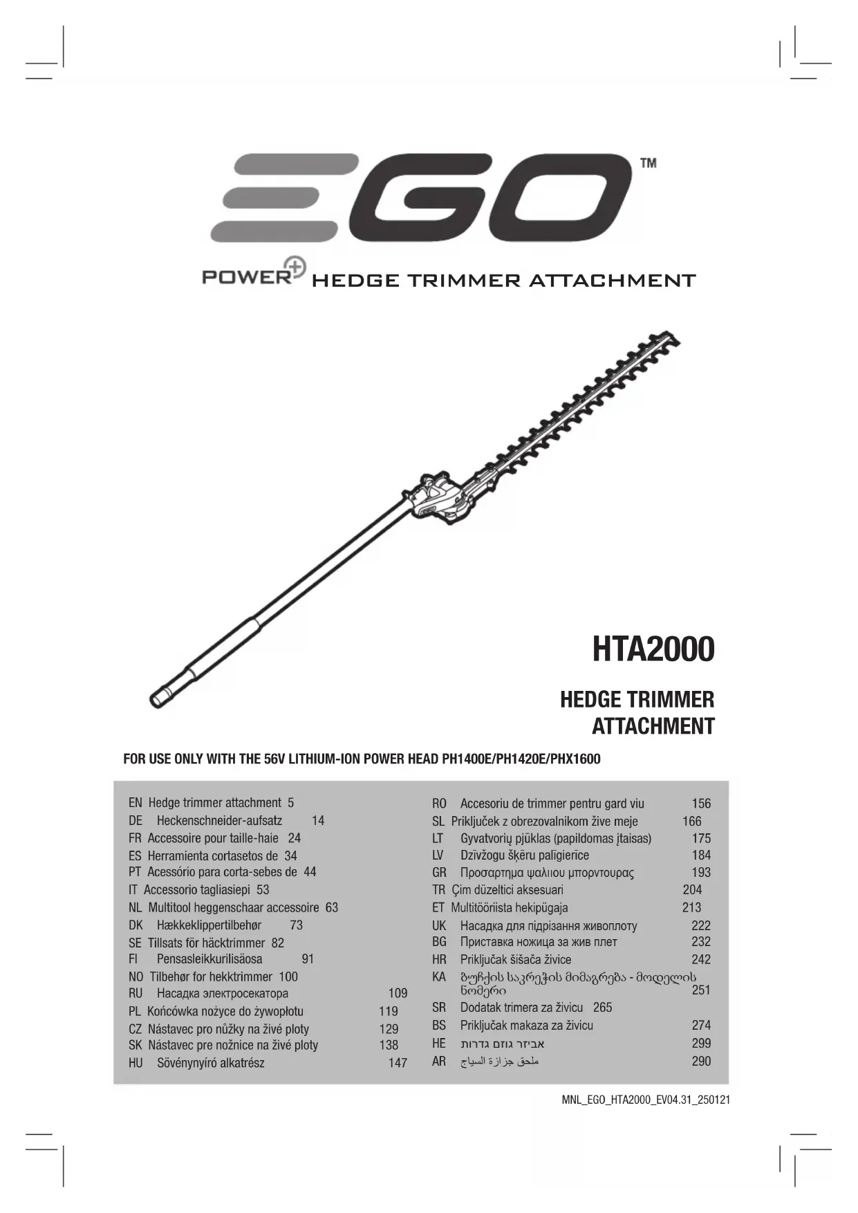 HTA2000 - Outils multifonctions EGO - Notice d'utilisation et mode d'emploi gratuit