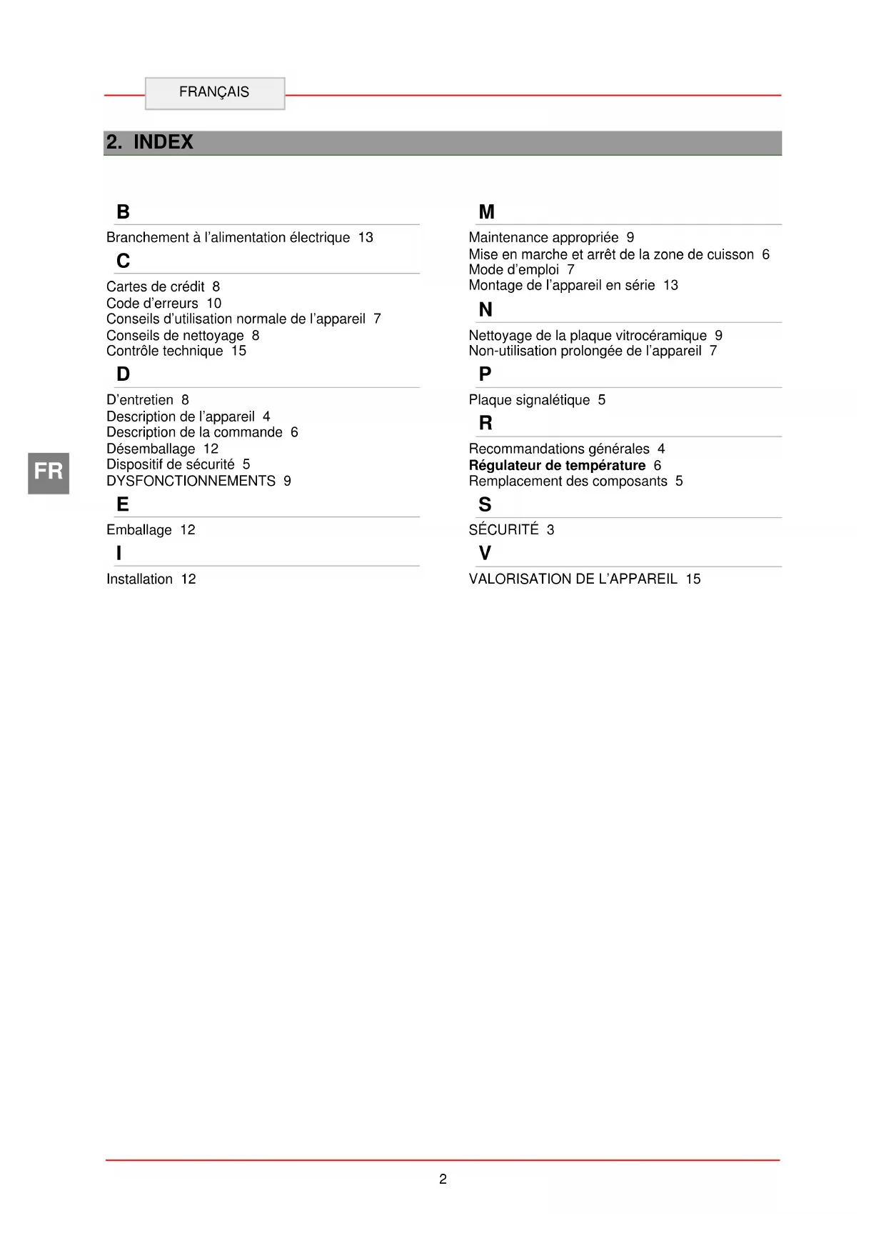 D’entretien 8 Description de l’appareil 4 Description de la commande 6 Désemballage 12 Dispositif de sécurité 5 DYSFONCTIONNEMENTS 9