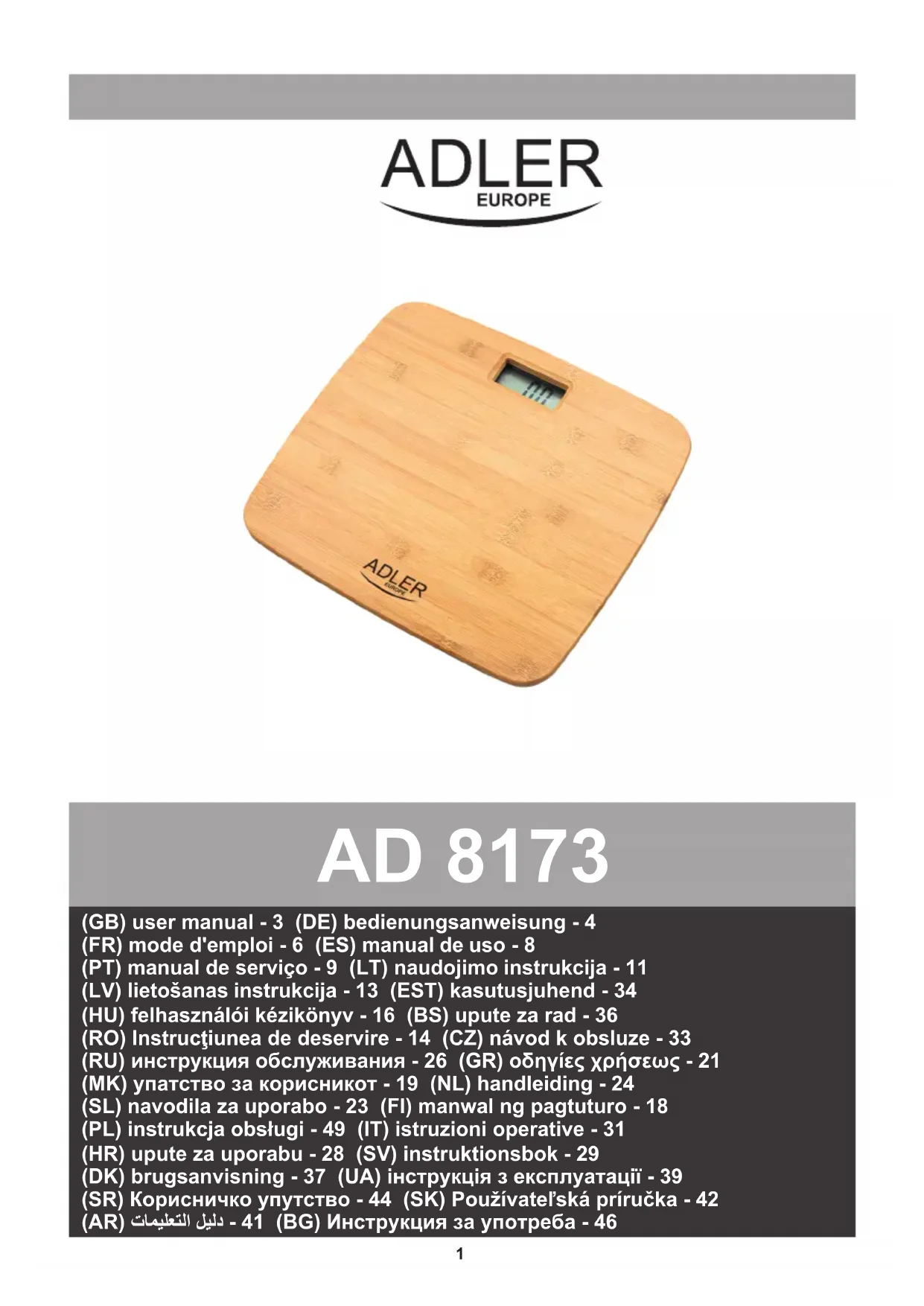 Retrouvez gratuitement la notice de l'appareil AD 8173 ADLER au format PDF.