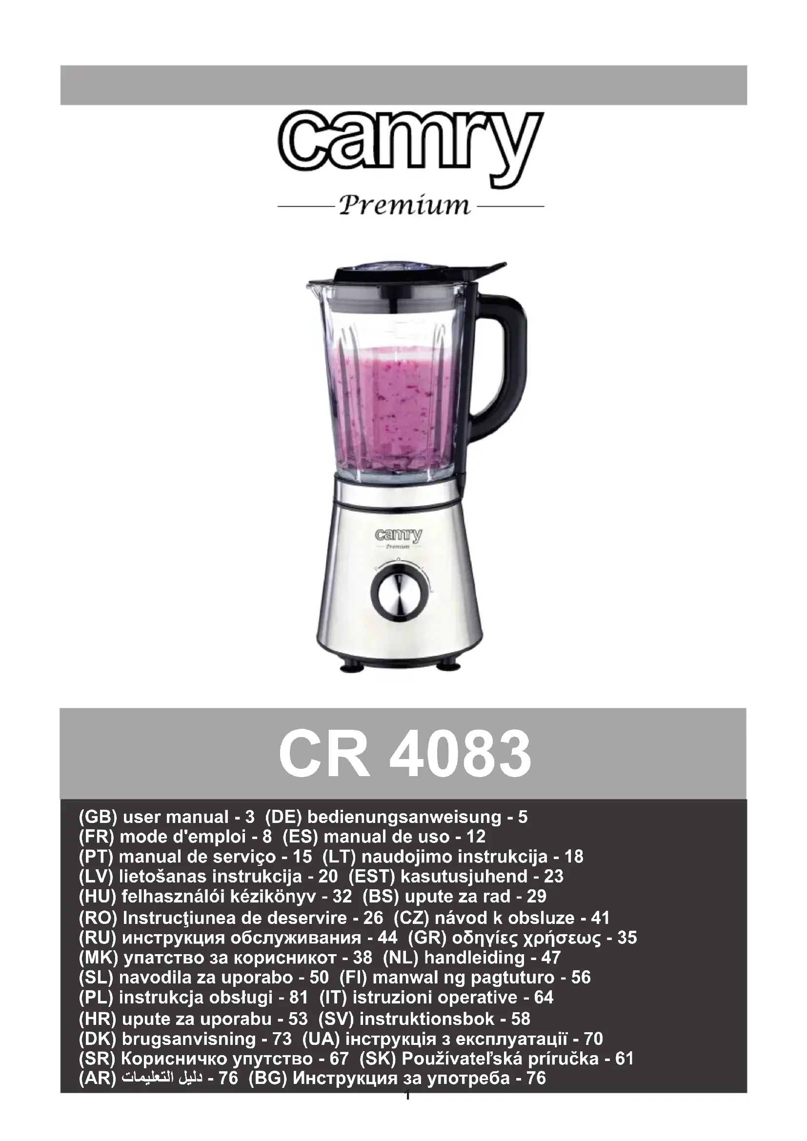 CR 4083 - Blender CAMRY - Notice d'utilisation et mode d'emploi gratuit