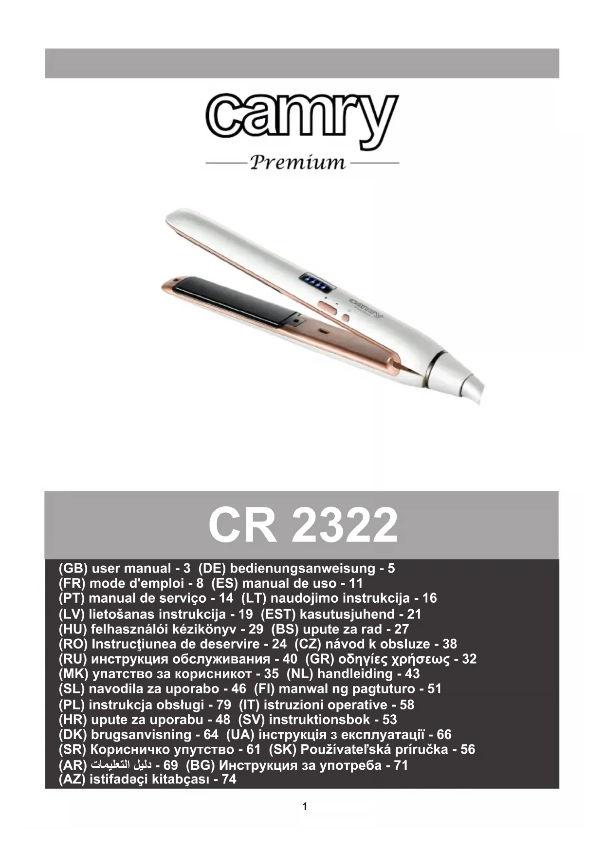 CR 2322 - Lisseur CAMRY - Notice d'utilisation et mode d'emploi gratuit