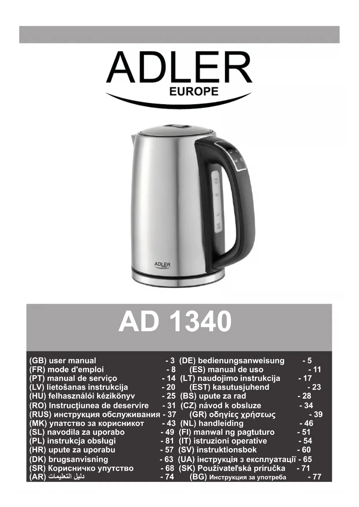 AD 1340 - Bouilloire ADLER - Notice d'utilisation et mode d'emploi gratuit
