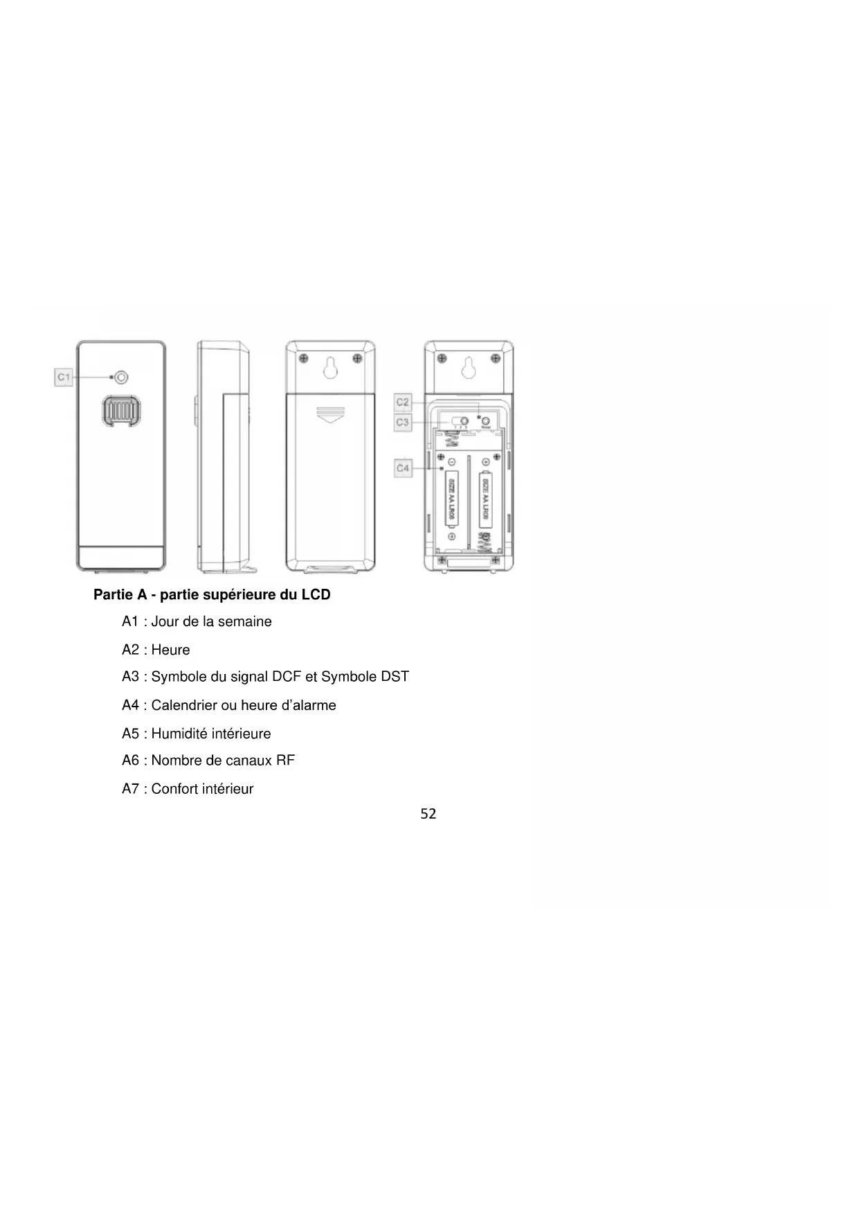 | Mesures météorologiques | Température intérieure et extérieure, humidité, pression atmosphérique |