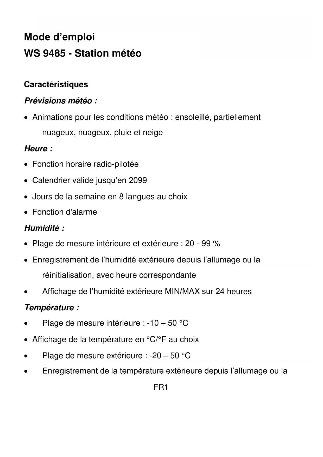 WS 9485 - Station Météo TECHNOLINE - Notice d'utilisation et mode d'emploi gratuit