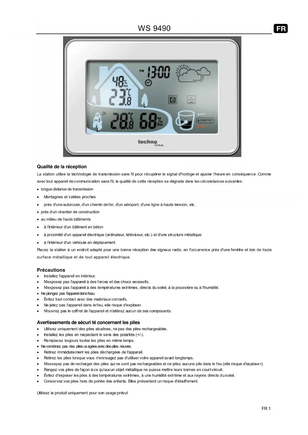 Retrouvez gratuitement la notice de l'appareil WS 9490 TECHNOLINE au format PDF.