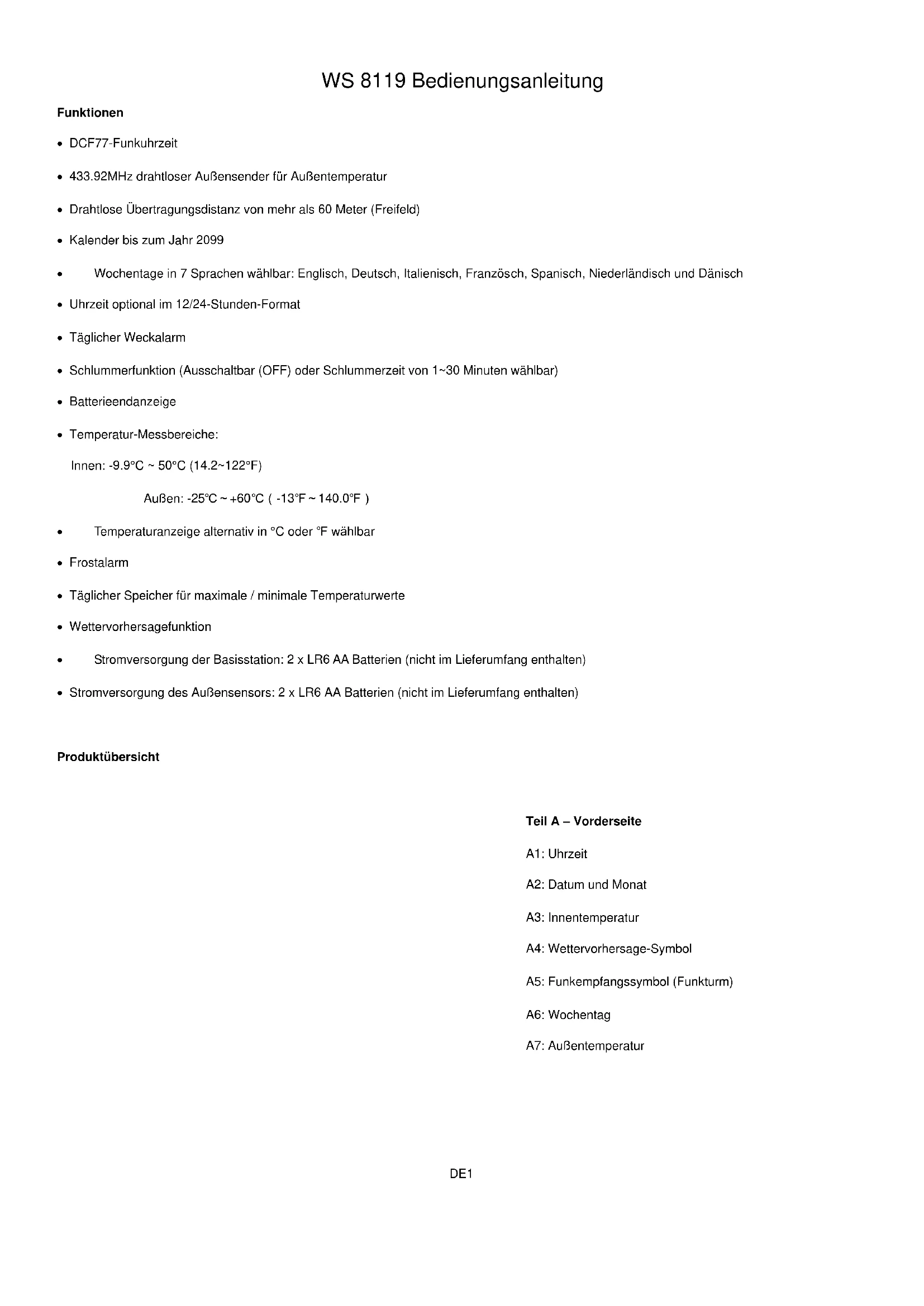 Retrouvez gratuitement la notice de l'appareil WS 8119 Techno Line au format PDF.