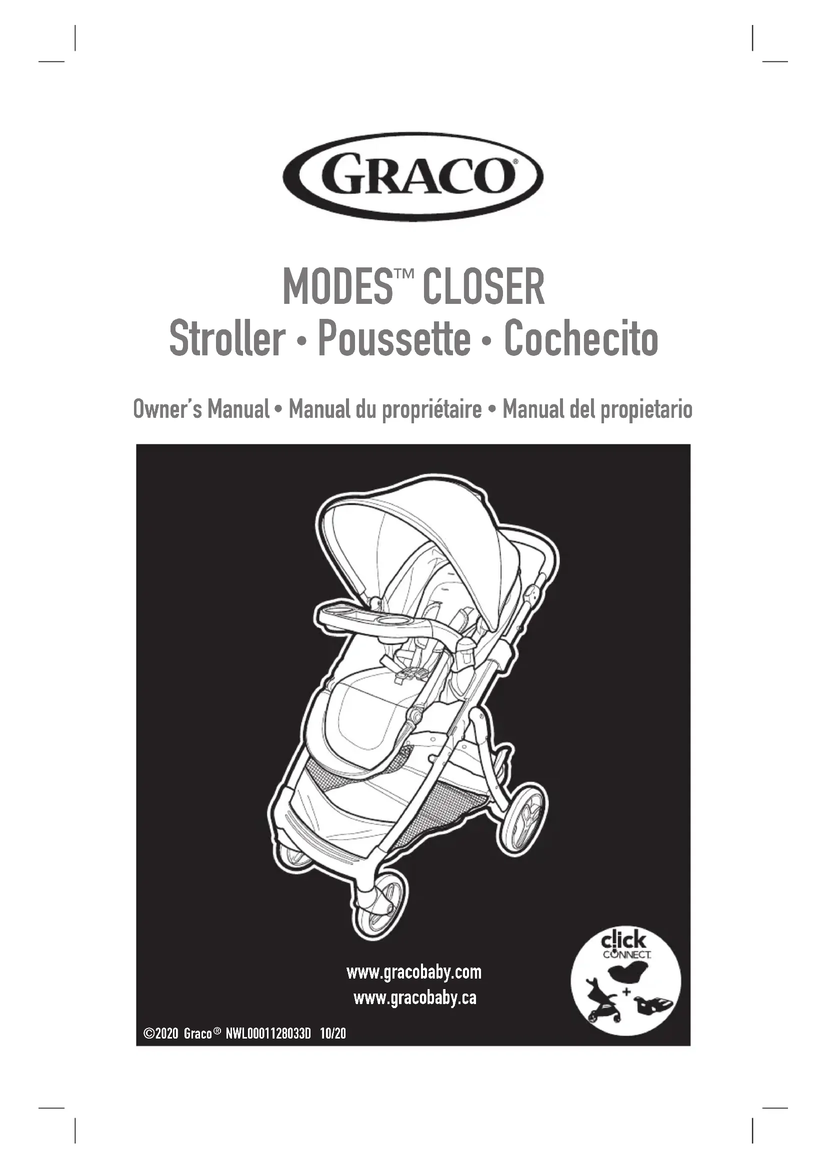 Utiliser uniquement un siège d’auto pour bébé SnugRide® Click Connect de Graco® avec cette poussette. Cette poussette n’est compatible qu’avec les sièges d’auto pour bébé Snugride® de Graco® avec Click Connect™. Utiliser uniquement avec des sièges d’auto pour bébé de Graco® portant le logo Click Connect™. Tout mauvais usage de cette poussette avec un siège d’auto d’une autre marque peut occasionner des blessures graves ou mortelles. Lire le manuel d’utilisation fourni avec le siège d’auto pour bébé Graco avant de l’utiliser avec cette poussette.