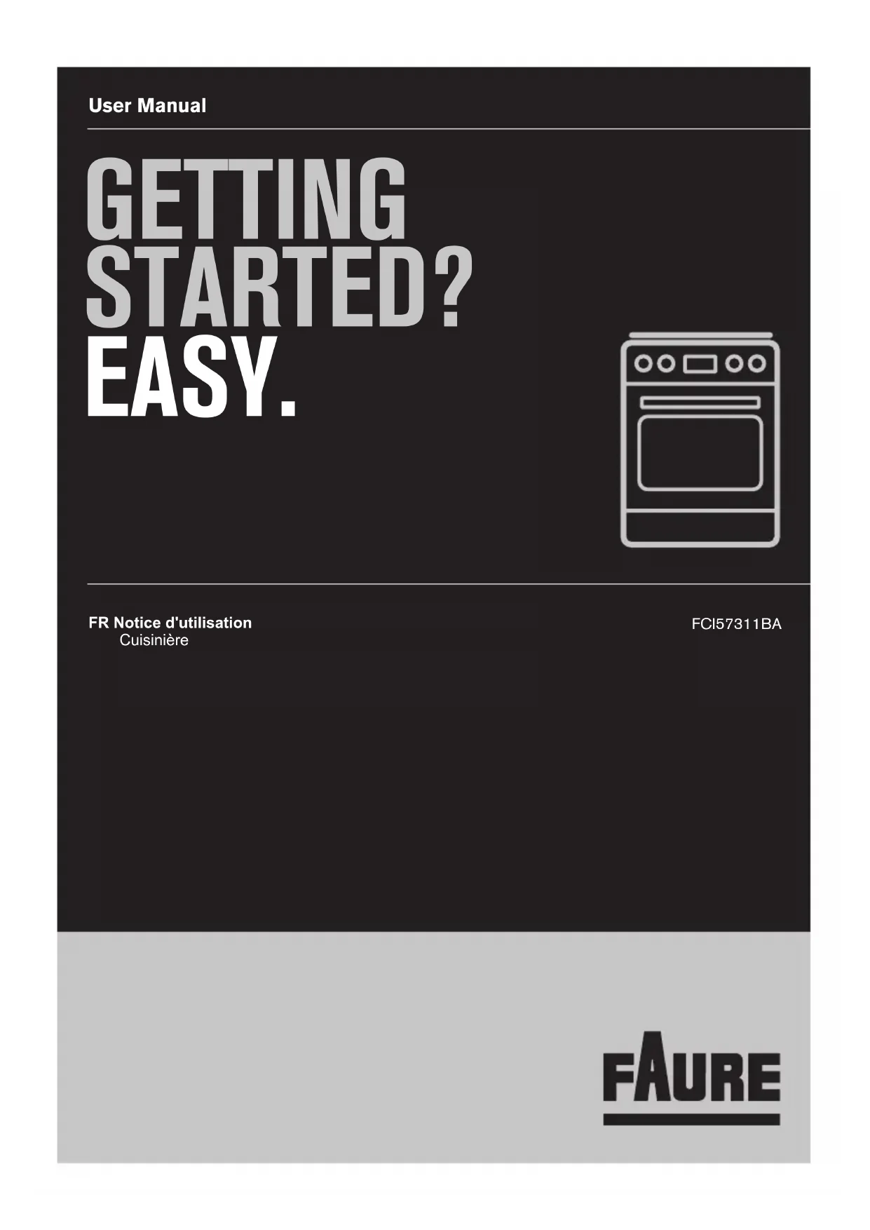 GETTING STARTED? EASY. User Manual FCI57311BA FR Notice d'utilisation CuisinièreVISITEZ NOTRE SITE WEB POUR : Obtenir des conseils d’utilisation, des brochures, un dépanneur, des informations sur le service et les réparations : www.faure.com/support