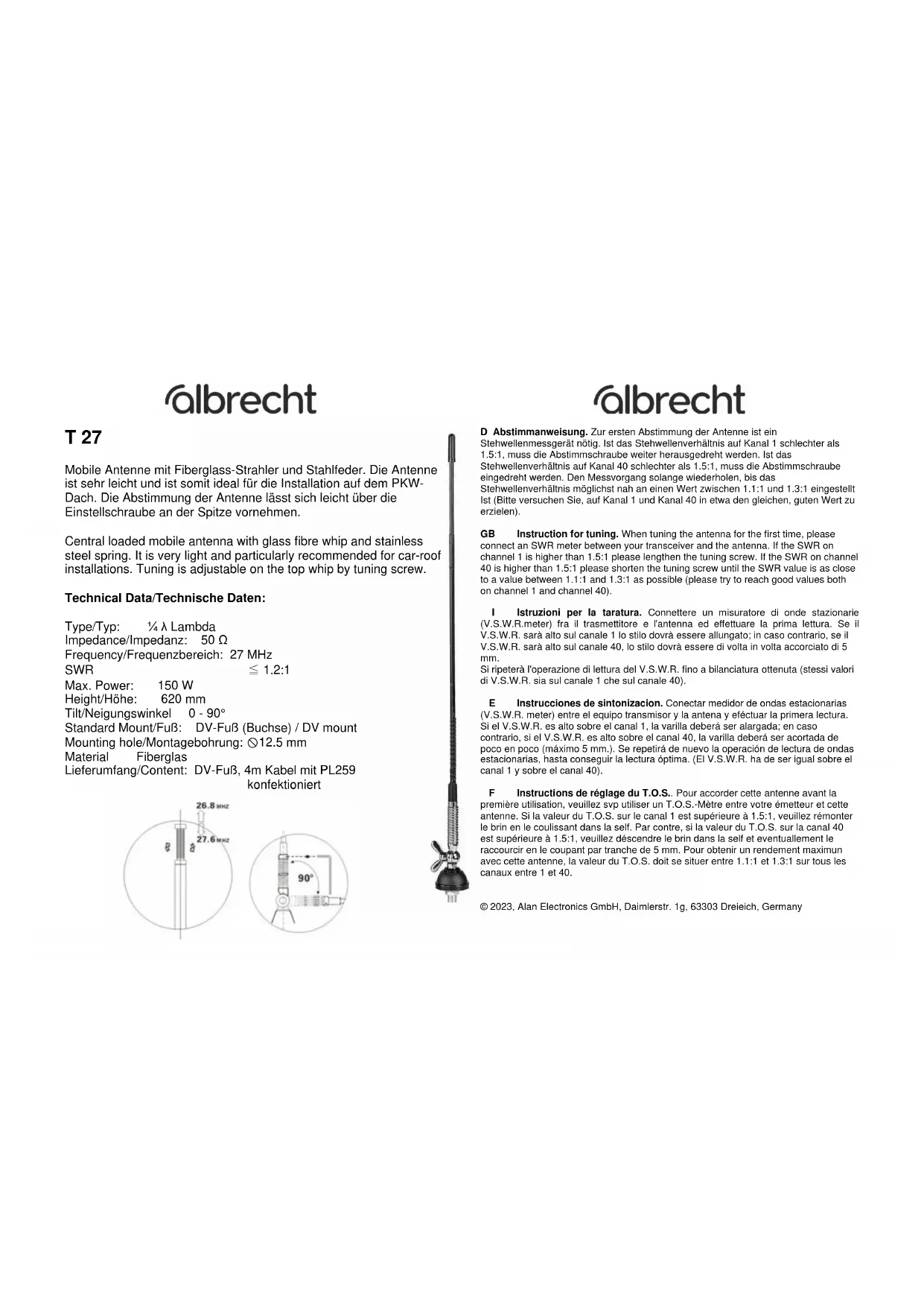 Retrouvez gratuitement la notice de l'appareil T27 ALBRECHT au format PDF.
