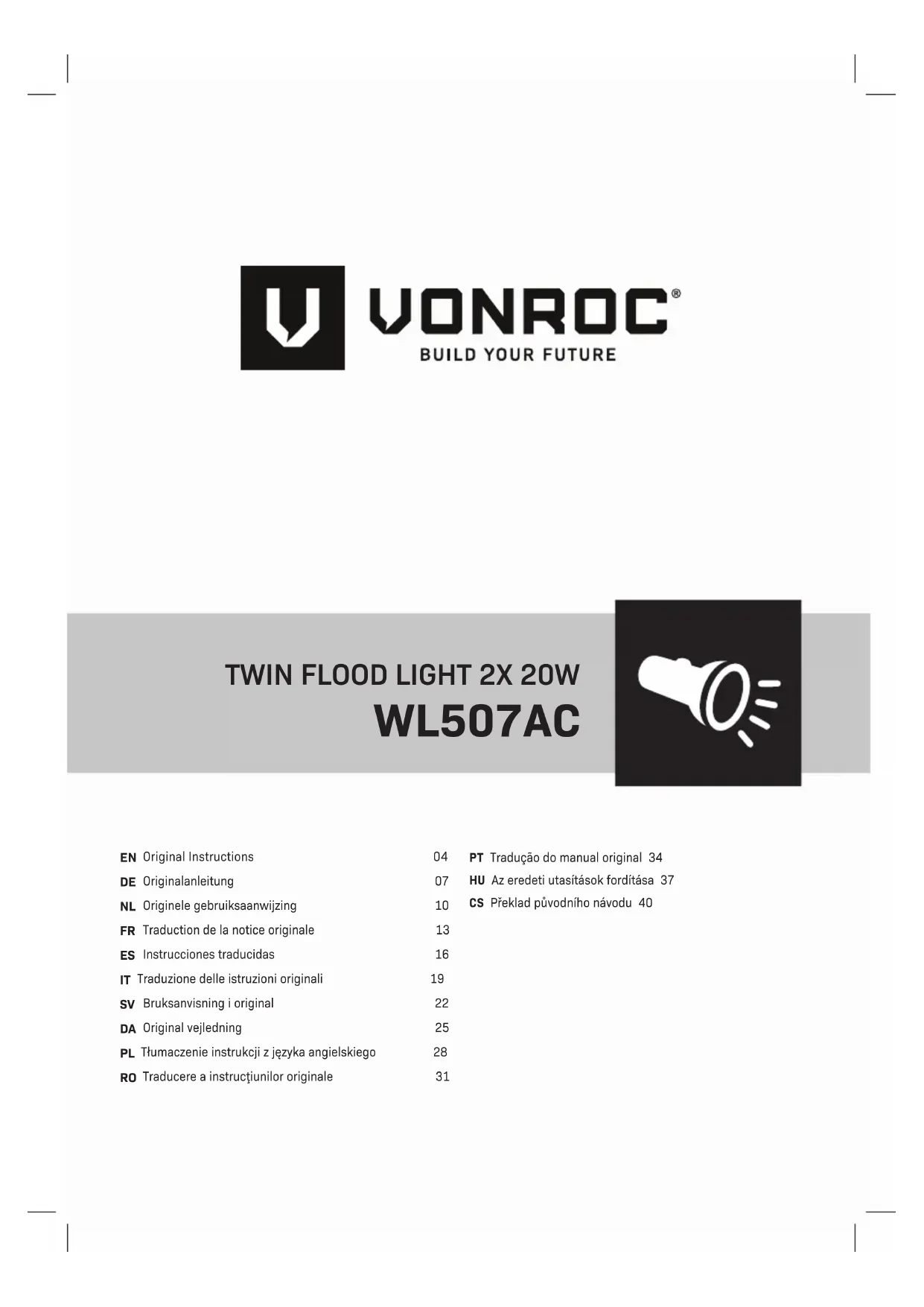 WL507AC - Éclairage Vonroc - Notice d'utilisation et mode d'emploi gratuit