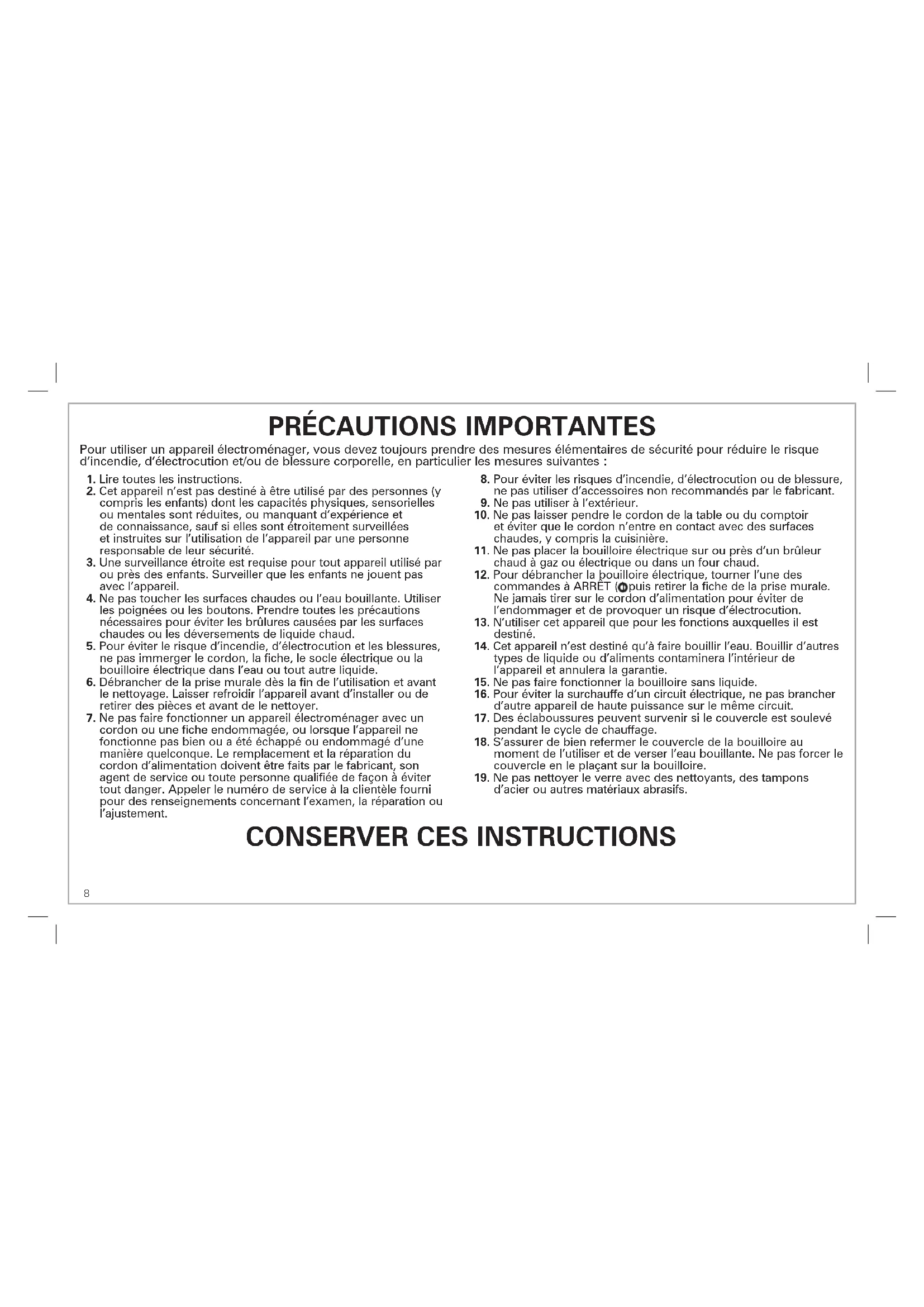 18. S’assurer de bien refermer le couvercle de la bouilloire au