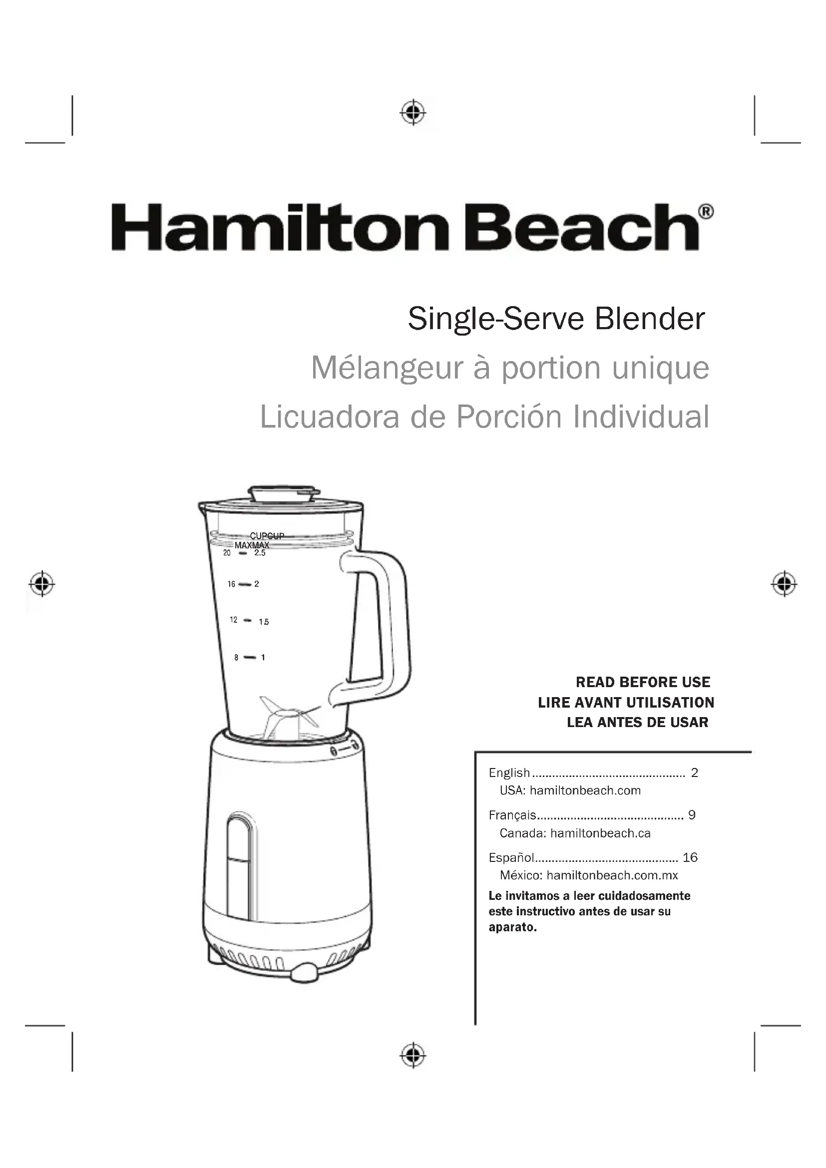 Téléchargez la notice de votre Blender au format PDF gratuitement ! Retrouvez votre notice 51157 - HAMILTON BEACH et reprennez votre appareil électronique en main. Sur cette page sont publiés tous les documents nécessaires à l'utilisation de votre appareil 51157 de la marque HAMILTON BEACH.