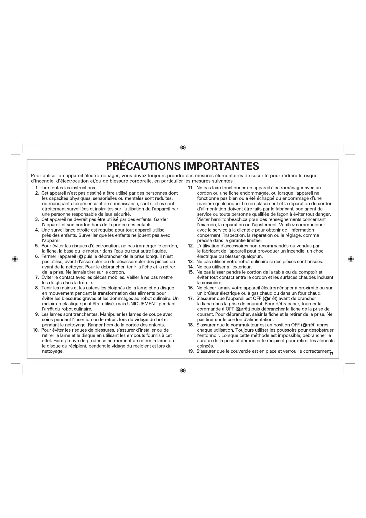 70735 - Robot culinaire HAMILTON BEACH - Notice d'utilisation et mode d'emploi gratuit