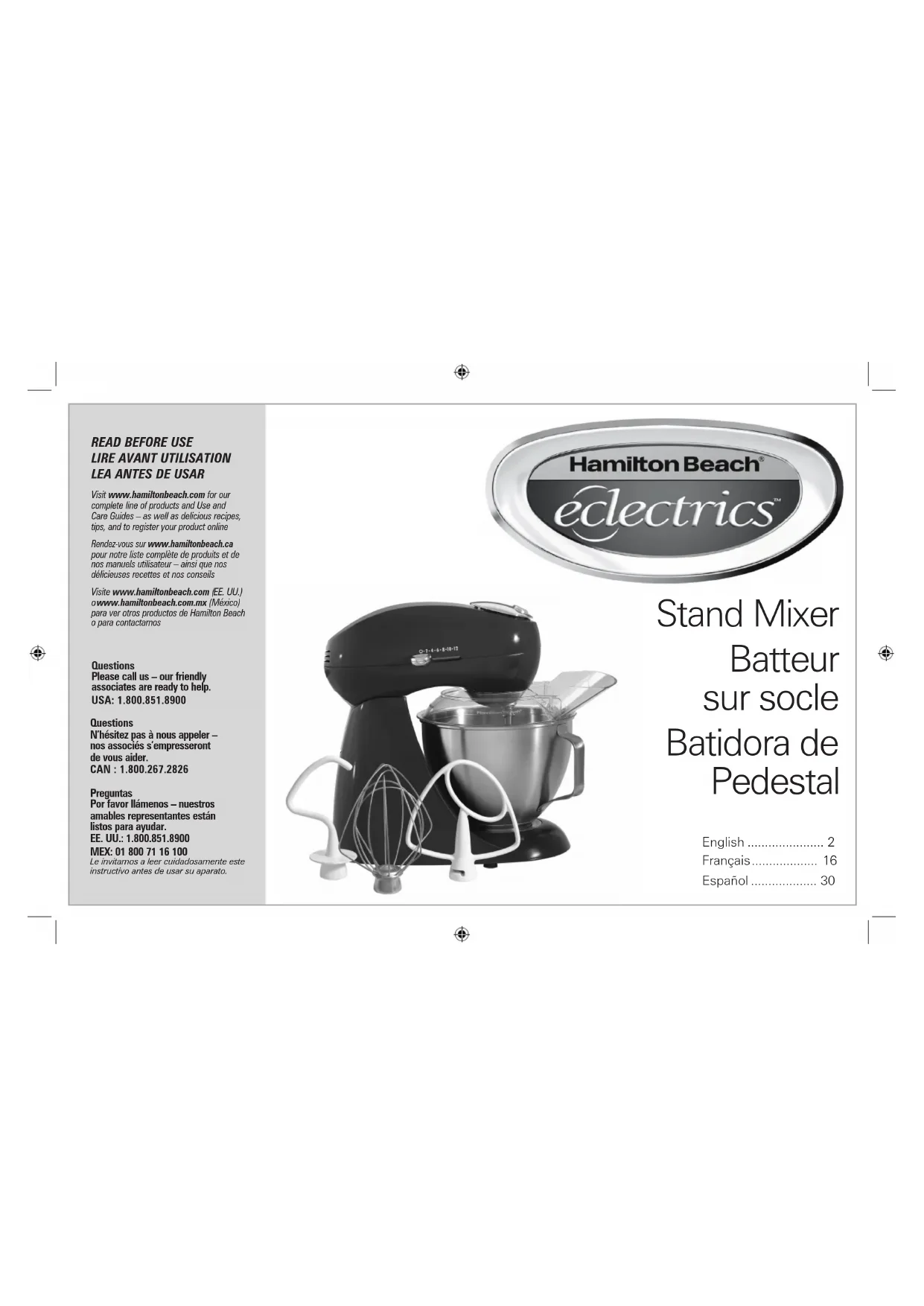 Visit www.hamiltonbeach.com for our complete line of products and Use and Care Guides – as well as delicious recipes, tips, and to register your product online Rendez-vous sur www.hamiltonbeach.ca pour notre liste complète de produits et de nos manuels utilisateur – ainsi que nos délicieuses recettes et nos conseils Visite www.hamiltonbeach.com ( EE. UU.)