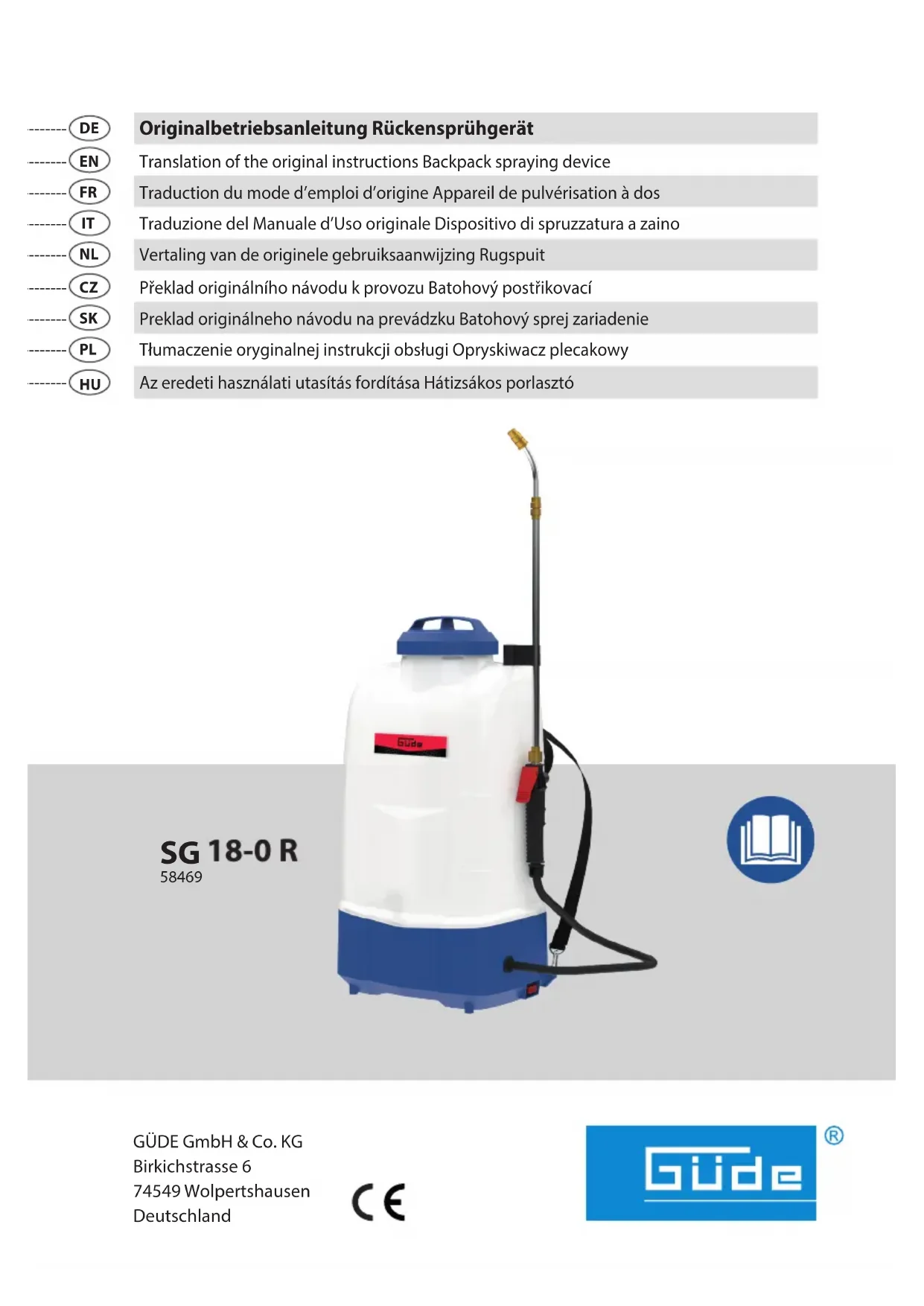 Traduction du mode d’emploi d’origine Appareil de pulvérisation à dos