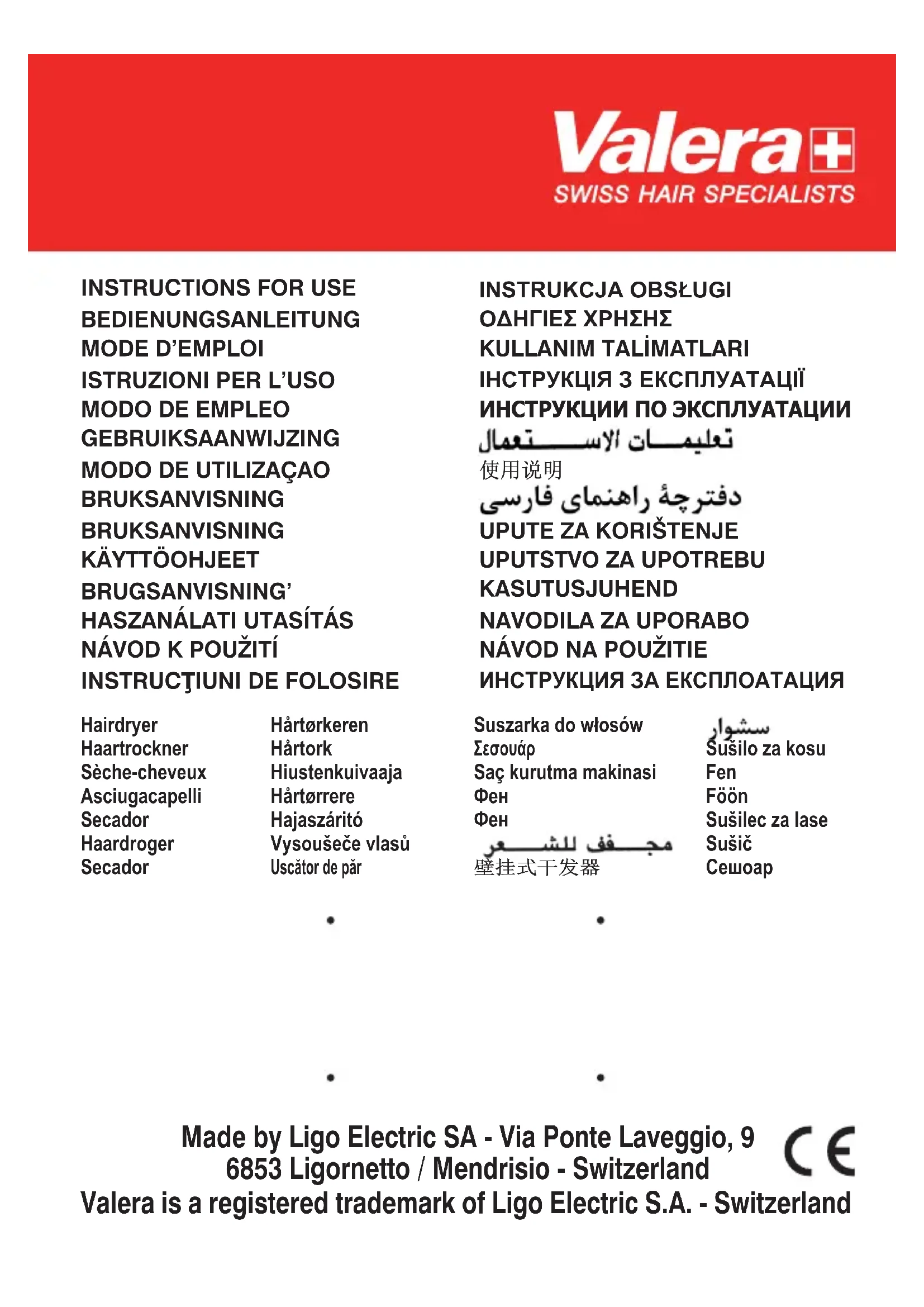 - Spegnete Italiano VALERA est une marque enregistrée par Ligo Electric S.A. - Suisse Pas de charge électrostatique ou «fly away» Les ions avec charge négative aident à réduire l’électricité statique et l’effet «fly away» des cheveux (cheveux frisés) et les ondulations. Effet purifiant Les ions avec charge négative émis par le sèche-cheveux font que les particules polluantes de l’air (chargées positivement ou neutres) s’attirent les unes les autres; elles deviennent ainsi lourdes et précipitent au sol par gravité, en purifiant l’air.