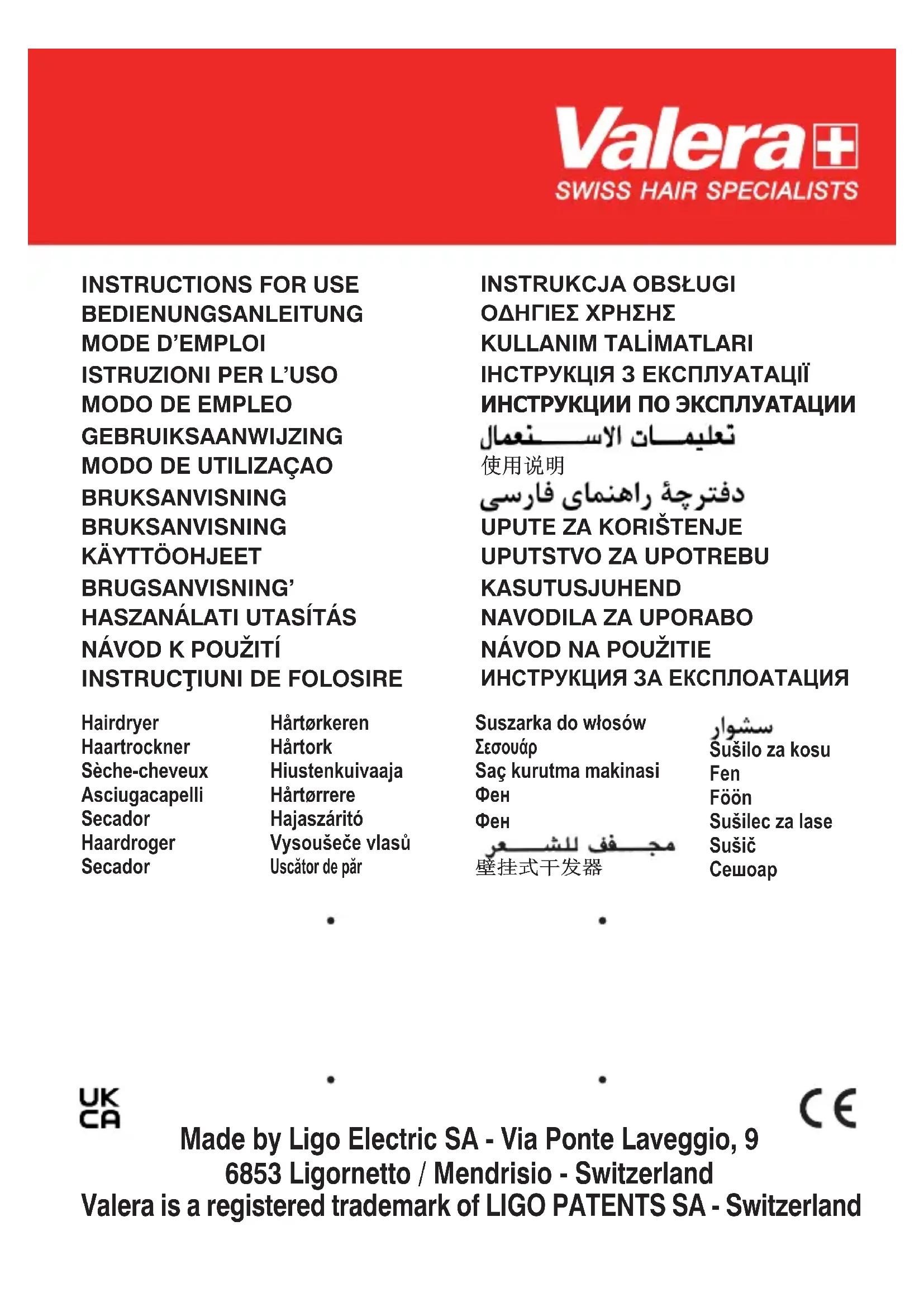 personnes non autorisées. En cas de panne, renvoyer l’appareil correctement emballé avec le certificat de garantie correctement daté et timbré par le vendeur à l’un de nos Centres d’Assistance agréés ou au magasin d’achat qui l’enverra à l’importateur officiel pour la réparation sous garantie.13 ISTRUZIONI PER L’USO - Istruzioni originali Leggere attentamente queste istruzioni per l’uso. Disponibili anche su www.valera.com