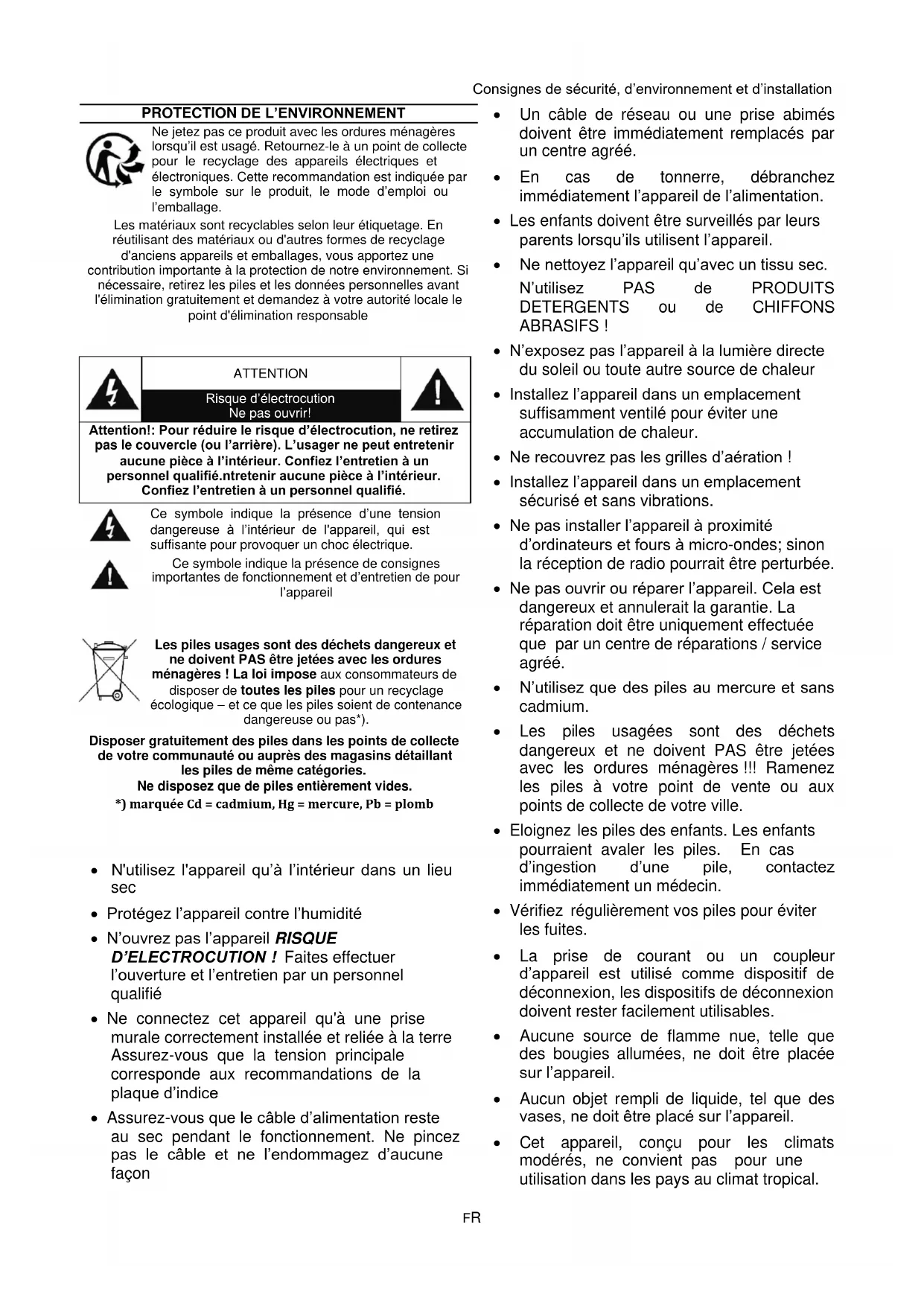 - N’ouvrez pas l’appareil RISQUE D’ELECTROCUTION ! Faites effectuer l’ouverture et l’entretien par un personnel qualifié