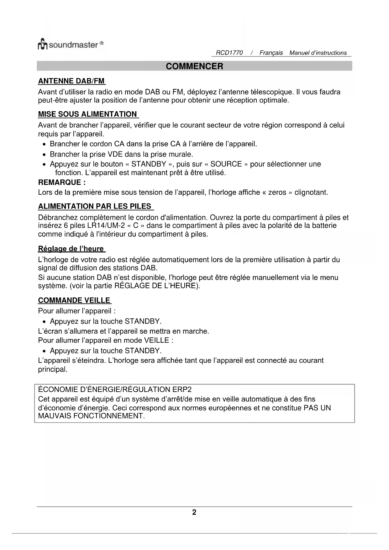 RCD1770 - Radio Soundmaster - Notice d'utilisation et mode d'emploi gratuit