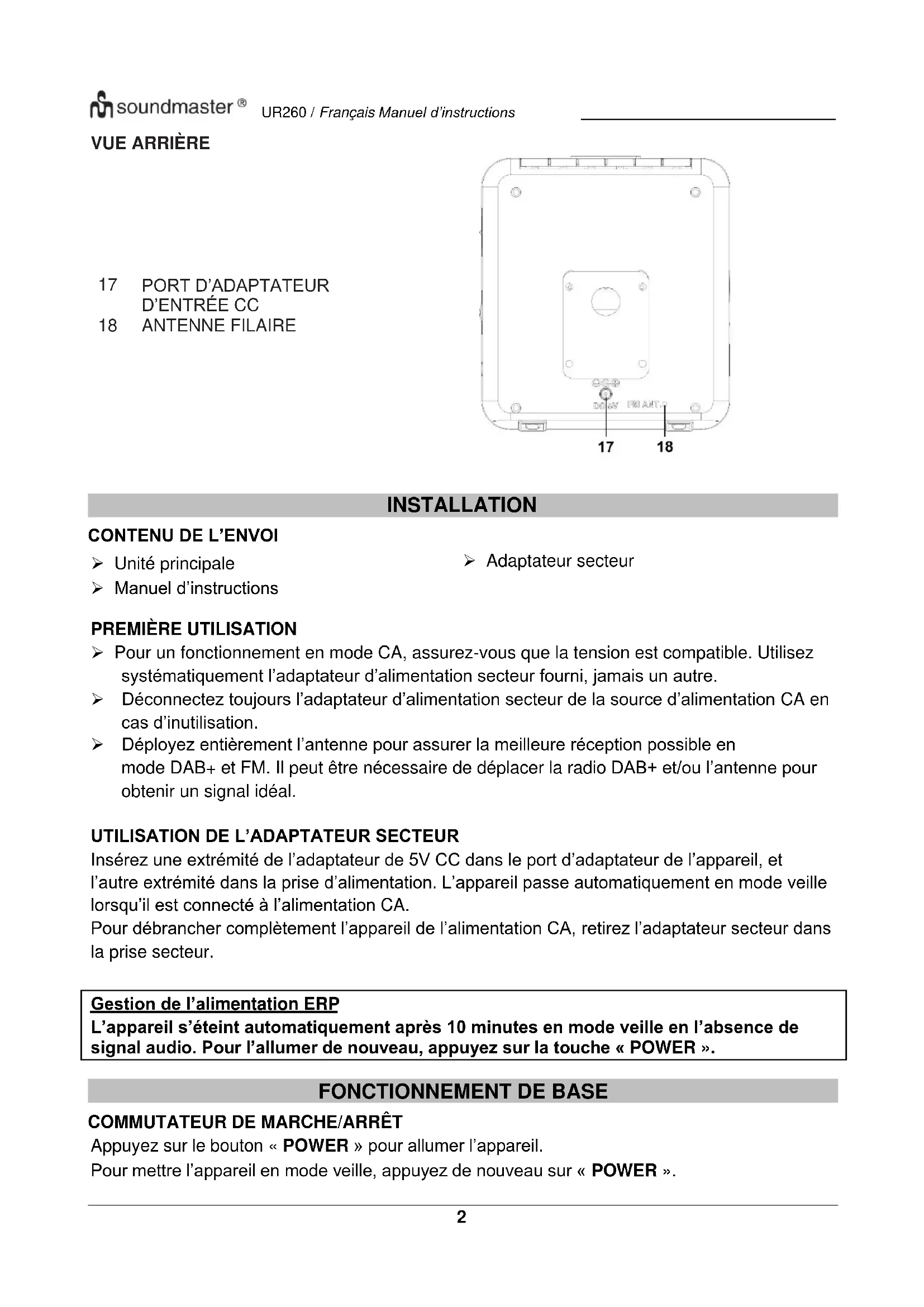 Retrouvez gratuitement la notice de l'appareil UR260 Soundmaster au format PDF.