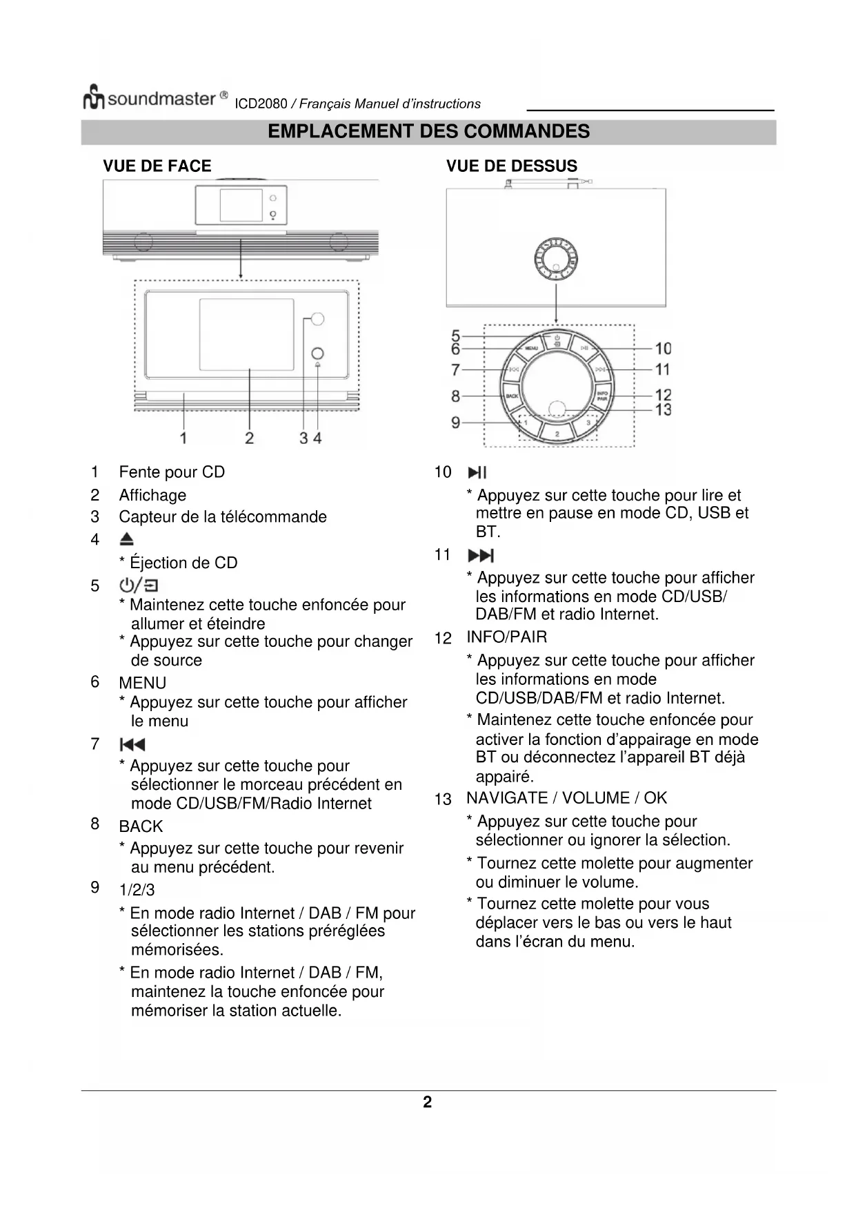 ICD2080 - Système hifi Soundmaster - Notice d'utilisation et mode d'emploi gratuit