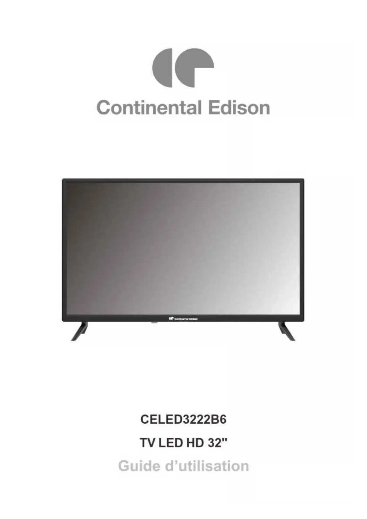 Téléchargez la notice de votre Téléviseur au format PDF gratuitement ! Retrouvez votre notice CELED3222B6 - CONTINENTAL EDISON et reprennez votre appareil électronique en main. Sur cette page sont publiés tous les documents nécessaires à l'utilisation de votre appareil CELED3222B6 de la marque CONTINENTAL EDISON.