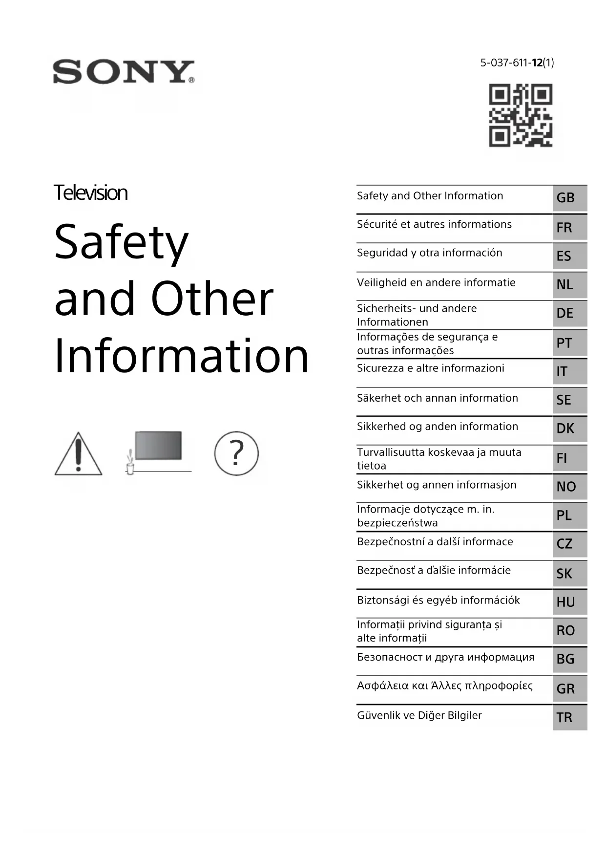 DE CE PRODUIT. Pour modèle d’adaptateur secteur applicable uniquement :La consommation énergétique et d’autres informations relatives à l’alimentation électrique, conformément au règlement de la Commission (UE) n° 2019/1782, sont disponibles sur le site Web suivant : https://compliance.sony.eu et https://compliance.sony.co.uk pour le Royaume-Uni AVERTISSEMENT Précaution La pile peut exploser si elle est remplacée par un mauvais type de pile.Les piles ne doivent pas être exposées à des chaleurs excessives comme le rayonnement solaire, le feu ou d’autres sources de chaleur similaires ni à une pression d’air extrêmement faible qui pourrait causer une explosion ou une fuite de liquide ou de gaz inflammable. Risque de stabilité Un téléviseur peut tomber et occasionner de graves blessures corporelles, voire la mort. AVERTISSEMENT Un téléviseur peut tomber et occasionner de graves blessures corporelles, voire la mort. De nombreuses blessures, notamment chez les enfants, peuvent être évitées en prenant de simples précautions telles que :• TOUJOURS utiliser les meubles, les supports ou les méthodes de montage recommandés par le fabricant du téléviseur.• TOUJOURS utiliser des meubles capables de supporter le téléviseur en toute sécurité.• TOUJOURS s’assurer que le téléviseur ne dépasse pas du bord du meuble qui le supporte.• TOUJOURS apprendre aux enfants qu’il est dangereux de monter sur le meuble pour atteindre le téléviseur ou ses touches de commande.• TOUJOURS acheminer les cordons et les câbles reliés à votre téléviseur de manière à ce qu’on ne puisse pas trébucher dessus, les tirer ou les attraper.• Gardez TOUJOURS les petits accessoires hors de portée des enfants, afin qu’ils ne soient pas avalés par erreur.• Ne JAMAIS placer un téléviseur dans un endroit instable.• Ne JAMAIS placer le téléviseur sur un meuble haut (par exemple, armoires ou bibliothèques) sans ancrer à la fois le meuble et le téléviseur à un support adapté.• Ne JAMAIS placer le téléviseur sur du tissu ou autre matériau placé entre le téléviseur et le meuble de support.• Ne JAMAIS d’objets, tels que des jouets et des télécommandes, qui pourraient inciter les enfants à grimper sur le dessus du téléviseur ou des meubles sur lesquels le téléviseur est placé. À propos des manuels Conservez les manuels à titre de référence. Manuel papier Guide d’installation (sur le dessus du produit) / Guide de référence / Sécurité et autres informations (ce manuel). Guide d’aide (Manuel en ligne)