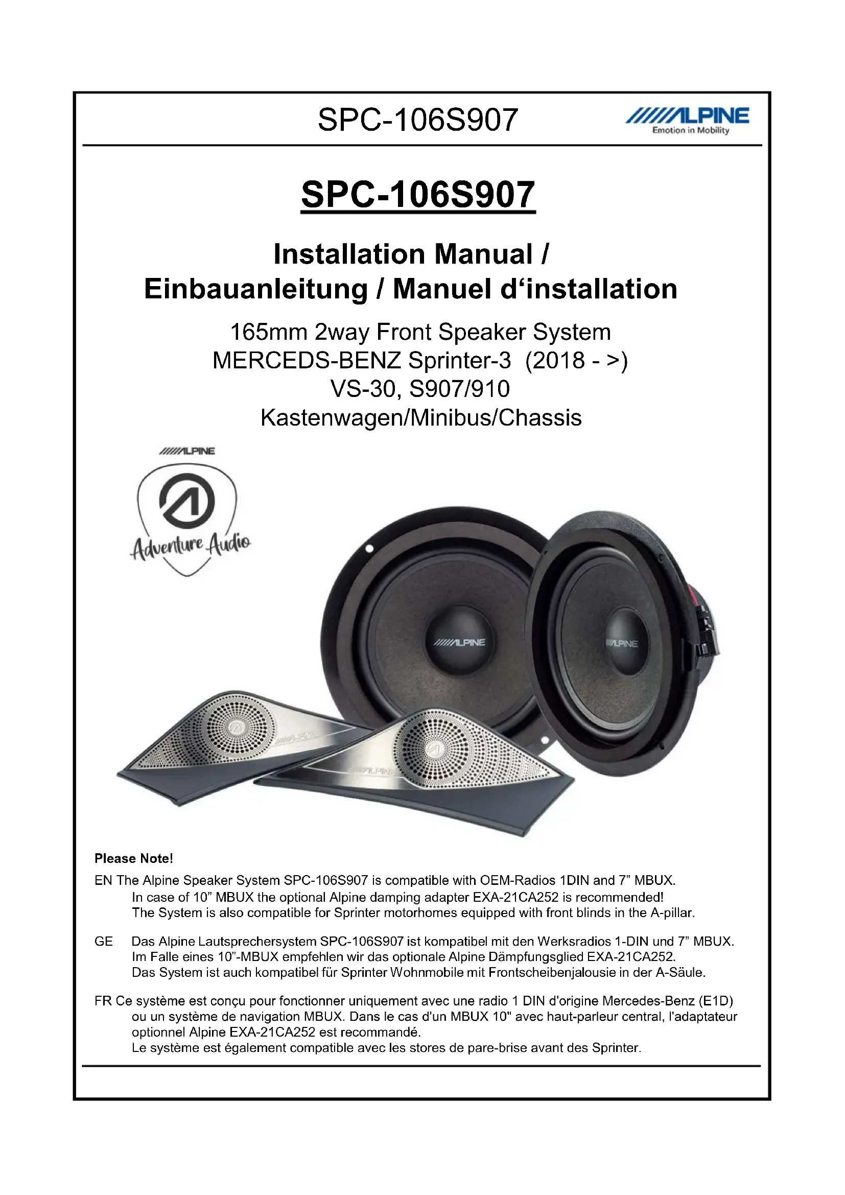 Téléchargez la notice de votre Autoradio au format PDF gratuitement ! Retrouvez votre notice SPC106S907 - ALPINE et reprennez votre appareil électronique en main. Sur cette page sont publiés tous les documents nécessaires à l'utilisation de votre appareil SPC106S907 de la marque ALPINE.