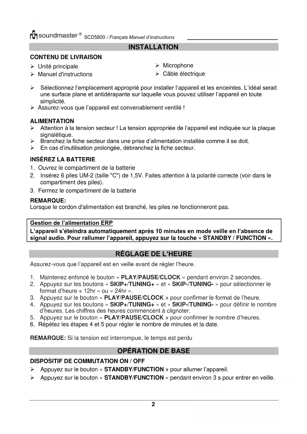 MODE D'EMPLOI SCD5800 Soundmaster