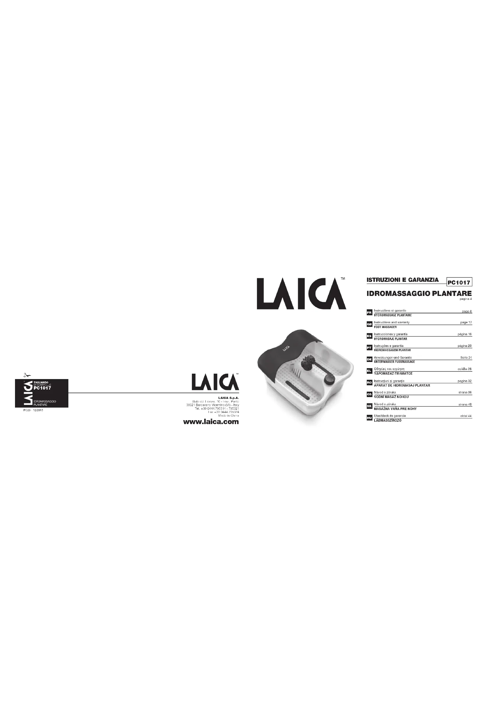PC1017 - Appareil de massage LAICA - Notice d'utilisation et mode d'emploi gratuit