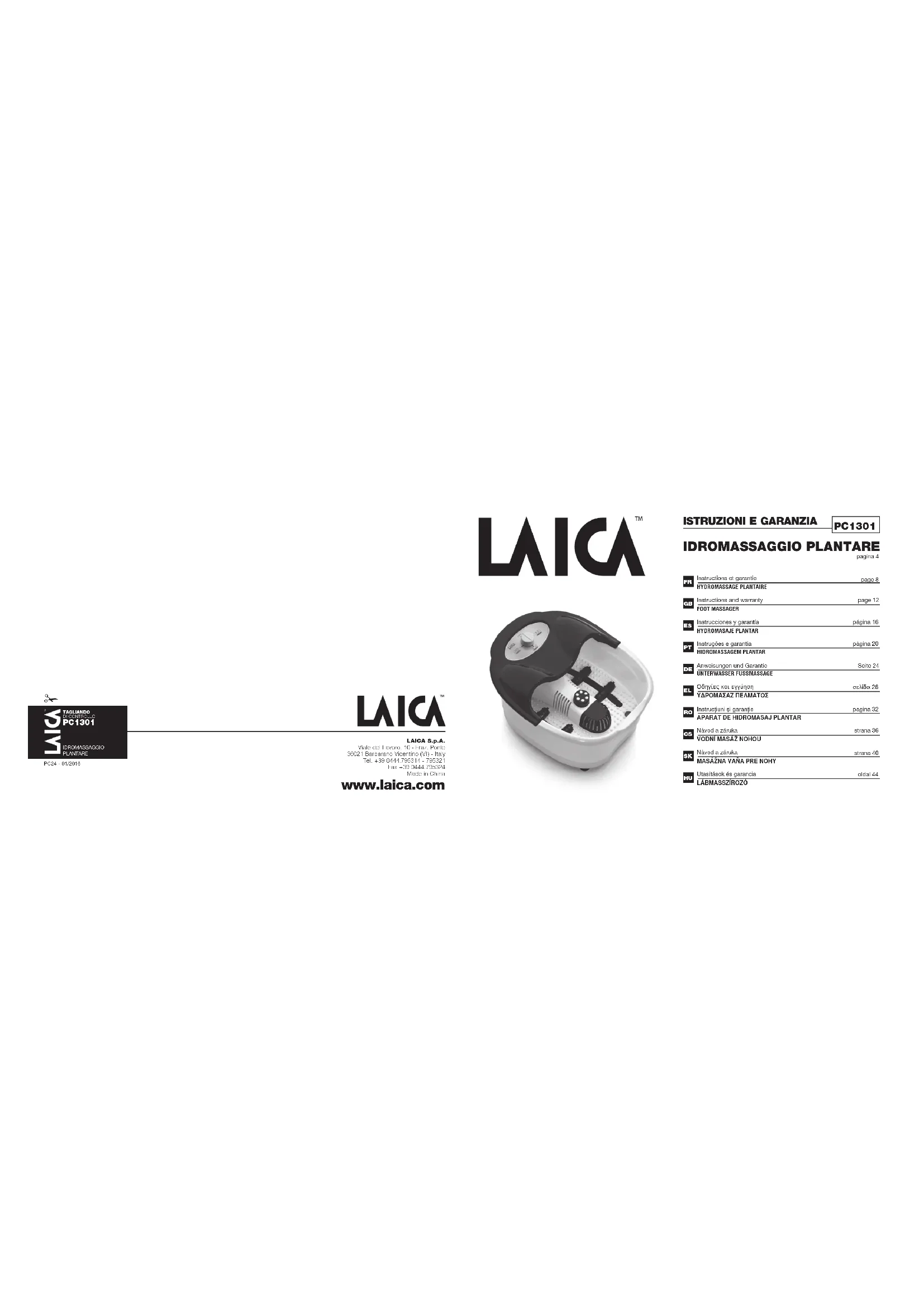 La notice d'utilisation doit être considérée comme partie du produit et doit être conservée pendant tout le cycle de vie de ce dernier. En cas de cession de l'appareil à un autre propriétaire, remettre également toute la documentation. Pour une utilisation sure et correcte du produit, l'utilisateur est tenu de lire attentivement les instructions et avertissements contenus dans le manuel car ils fournissent des informations importantes concernant la sécurité et les instructions pour l'utilisation et la maintenance. En cas de perte de la notice d'utilisation ou pour obtenir plus d'informations ou de détails, contacter l'entreprise à l'adresse figurant ci-dessous : Laica S.p.A. Viale del Lavoro, 10 – Fraz. Ponte – 36021 Barbarano Vicentino (VI) – Italie - Tél. +39 0444.795314 - 795321 - Fax +39 0444.795324 - www.laica.com INDEX