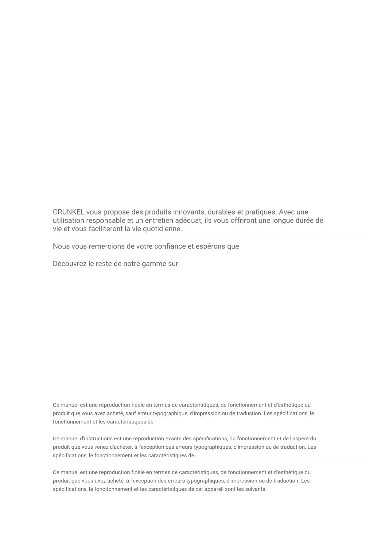GRUNKEL vous propose des produits innovants, durables et pratiques. Avec une utilisation responsable et un entretien ajustat, ils vous offriront une longue durée de vie et vous faciliterront la vie quotidienne.