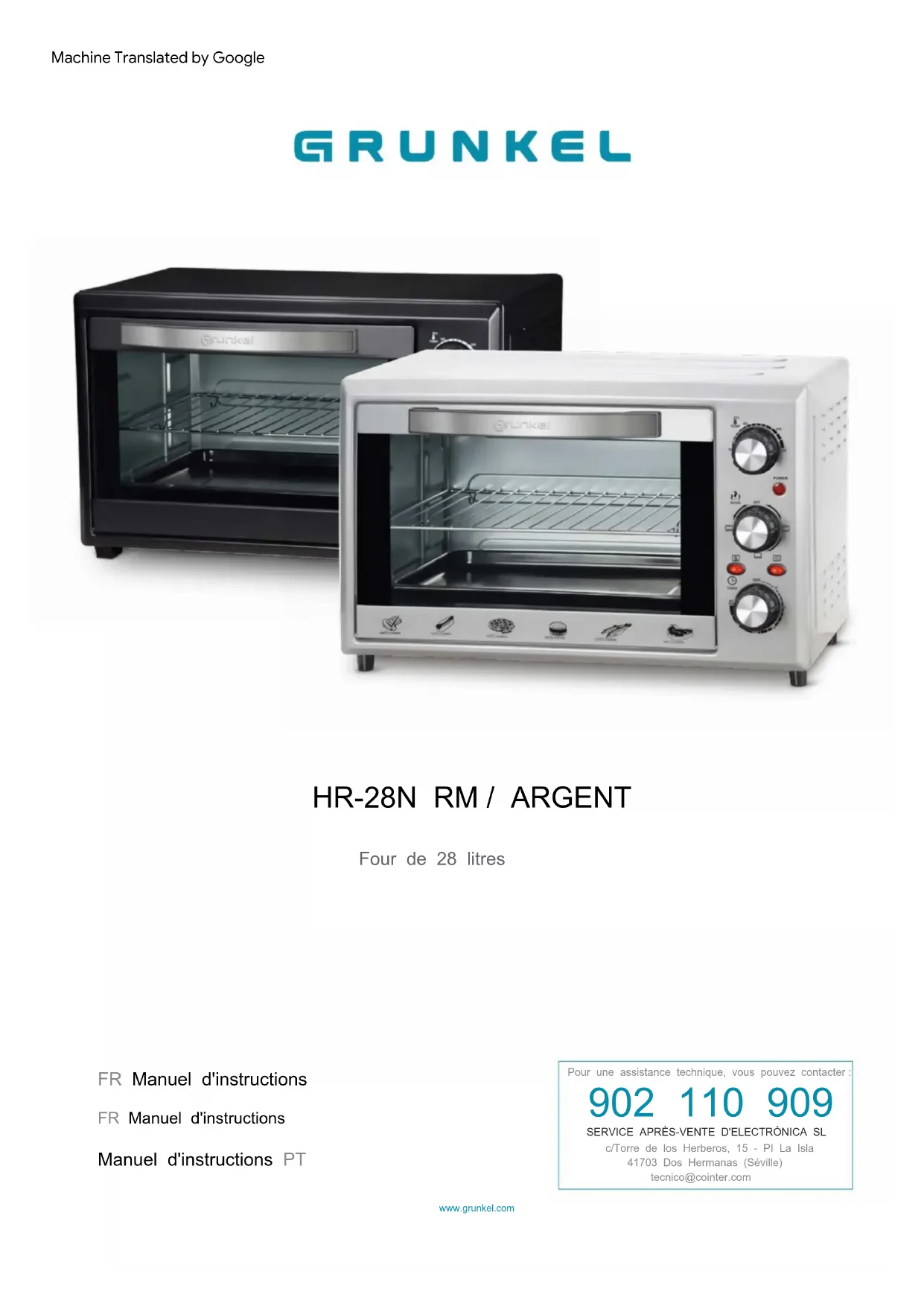HR28 - Four Grunkel - Notice d'utilisation et mode d'emploi gratuit