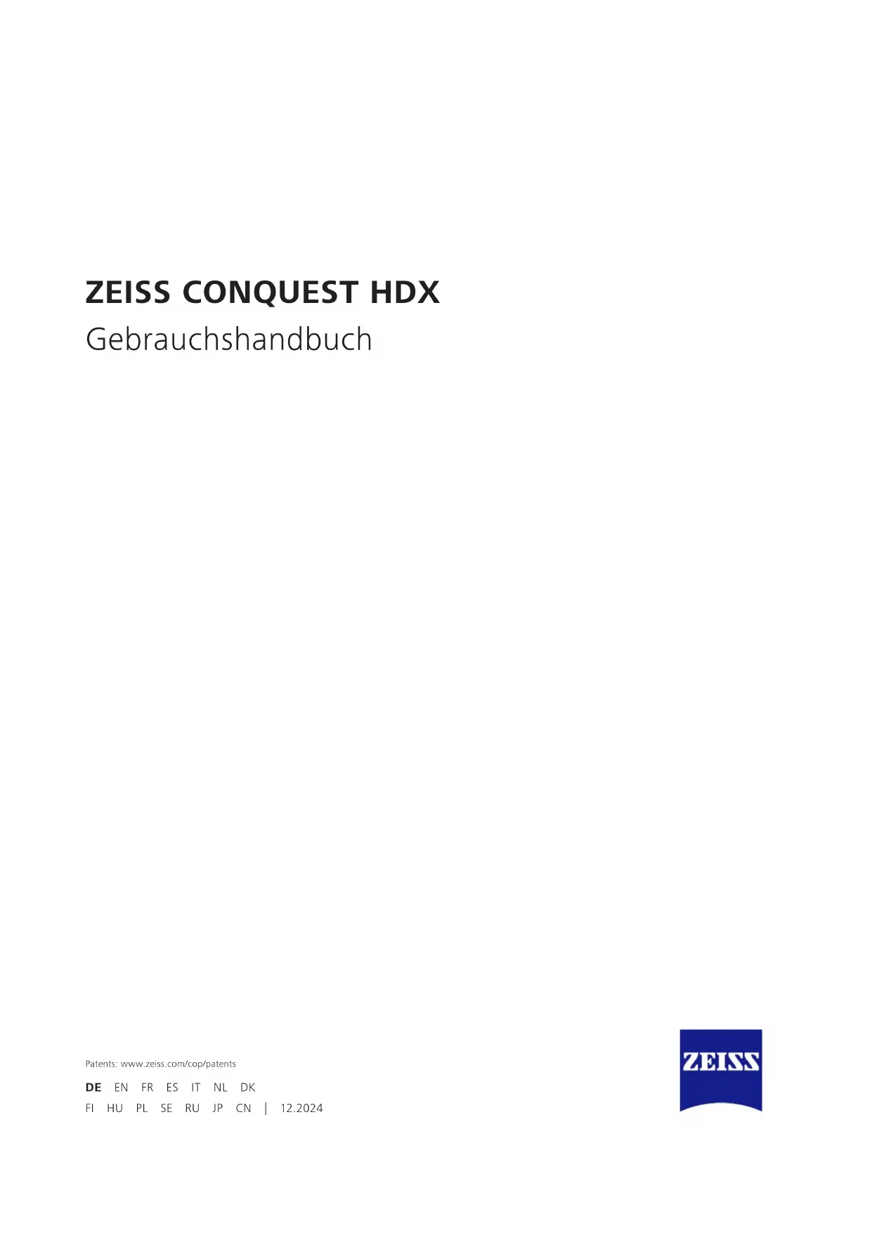 (45,2) Sous réserve de modications du produit et du contenu de livraison, liées aux progrès techniques dans le domaine.ZEISS CONQUEST HDX Manual de instrucciones Patents: www.zeiss.com/cop/patents DE EN FR ES IT NL DK FI HU PL SE RU JP CN | 12.202420 | 84
