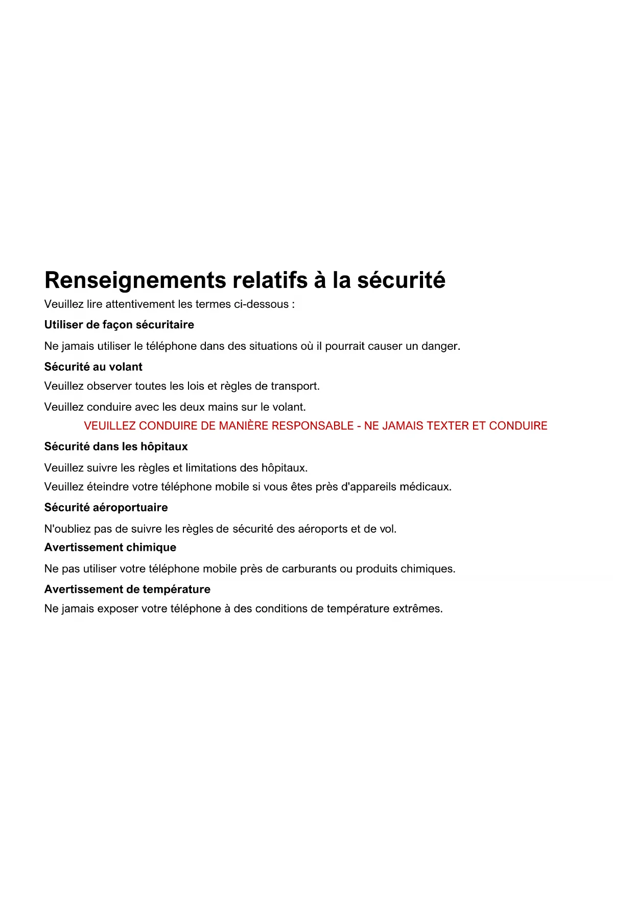 FCC ID: YHLBLUG61SRenseignements relatifs à la sécurité Veuillez lire attentivement les termes ci-dessous : Utiliser de façon sécuritaire Ne jamais utiliser le téléphone dans des situations où il pourrait causer un danger. Sécurité au volant Veuillez observer toutes les lois et règles de transport. Veuillez conduire avec les deux mains sur le volant. VEUILLEZ CONDUIRE DE MANIÈRE RESPONSABLE - NE JAMAIS TEXTER ET CONDUIRE Sécurité dans les hôpitaux Veuillez suivre les règles et limitations des hôpitaux. Veuillez éteindre votre téléphone mobile si vous êtes près d'appareils médicaux. Sécurité aéroportuaire N'oubliez pas de suivre les règles de sécurité des aéroports et de vol. Avertissement chimique Ne pas utiliser votre téléphone mobile près de carburants ou produits chimiques. Avertissement de température Ne jamais exposer votre téléphone à des conditions de température extrêmes.Risque lié à l'eau Votre téléphone n'est pas à l'épreuve de l'eau. Garder votre téléphone à l'abri de l'eau ou de tout autre liquide pour éviter des dommages. Appels d'urgence S'assurer que votre téléphone mobile est allumé dans une zone de service. Dans l'écran d'accueil, toucher sur la touche téléphone et composer le numéro d'urgence. Accessoires et batteries Utiliser seulement des batteries et accessoires homologués pour BLU. Sauvegarde des informations Ne pas oublier de conserver par écrit toutes les informations importantes. Sécurité de la batterie et mesures de précautions > Pour de meilleurs résultats et une meilleure autonomie de la batterie, il est recommandé de charger la batterie complétement avant d'utiliser le téléphone mobile pour la première fois. > La performance optimale d'une nouvelle batterie est généralement obtenue après deux ou trois cycles de charge complets. Note : Ne pas oublier que la surcharge continue aura des répercussions sur la durée de vie de la batterie. > Pendant la charge de la batterie, conserver le téléphone mobile hors de portée des enfants. > Garder la batterie dans un endroit frais et sec loin des rayons du soleil et de l'eau.> Ne pas exposer les piles à des températures extrêmes (inférieure à -8 °C (18 °F) ou supérieure à 43 °C (110 °F). > Cesser immédiatement d'utiliser la batterie si elle dégage une odeur, a des fissures et des fuites, une surchauffe, ou si elle est déformée ou à tout autre type de dommage physique. > Éviter d'utiliser le chargeur à proximité ou proche des liquides. Si le chargeur est en contact avec de l'eau ou n'importe quel liquide, le débrancher immédiatement afin de réduire le risque de surchauffe, de mauvais fonctionnement, de décharge électrique ou d'incendie.Déchets dangereux - Mise au rebut des batteries