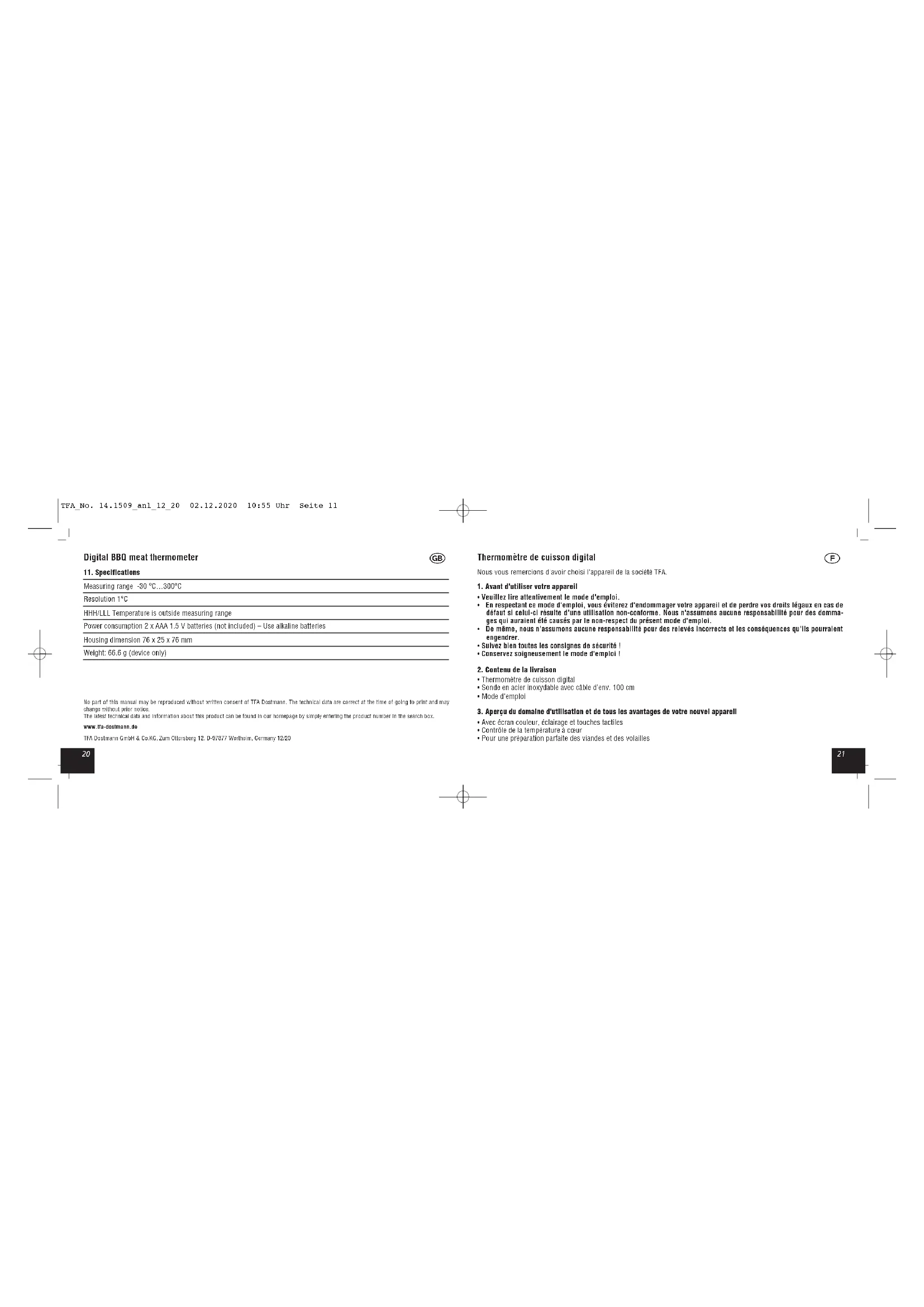 14.1509.01 - Thermomètre TFA - Notice d'utilisation et mode d'emploi gratuit
