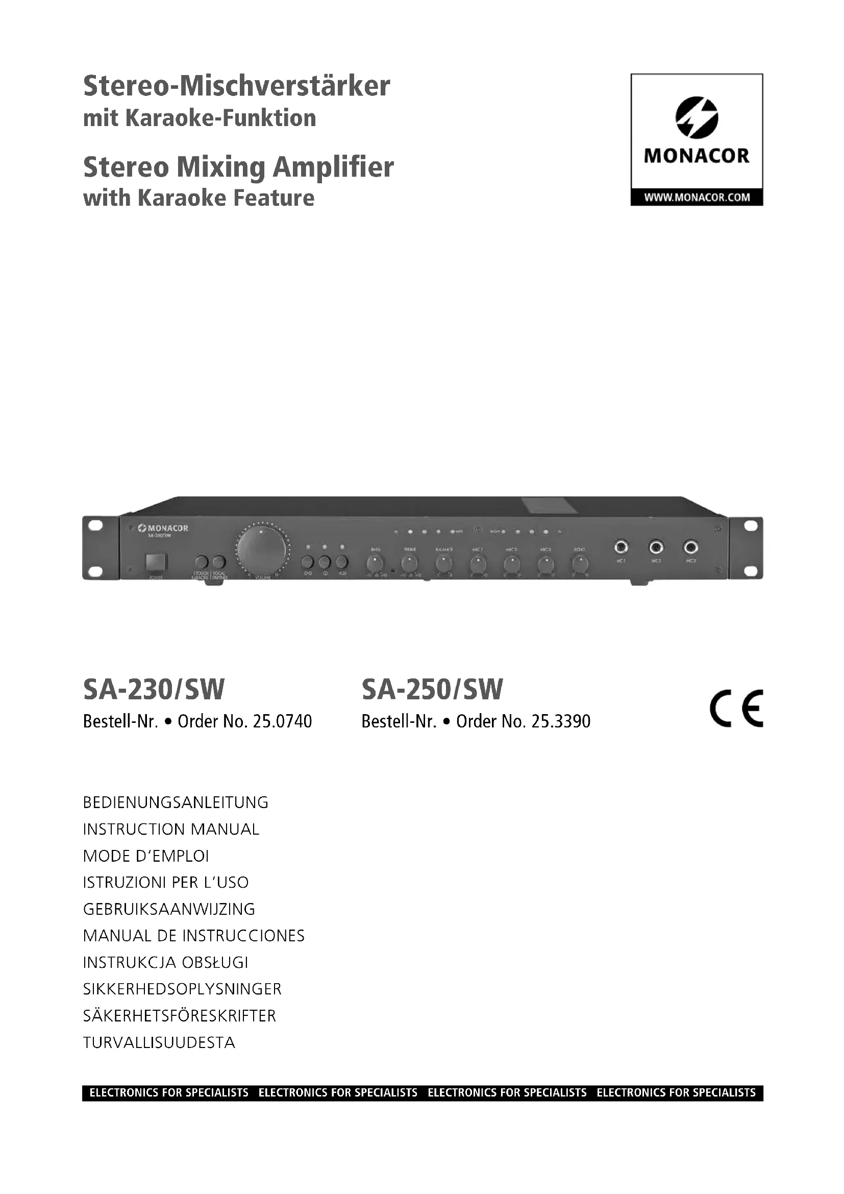 Retrouvez gratuitement la notice de l'appareil SA250SW Monacor au format PDF.