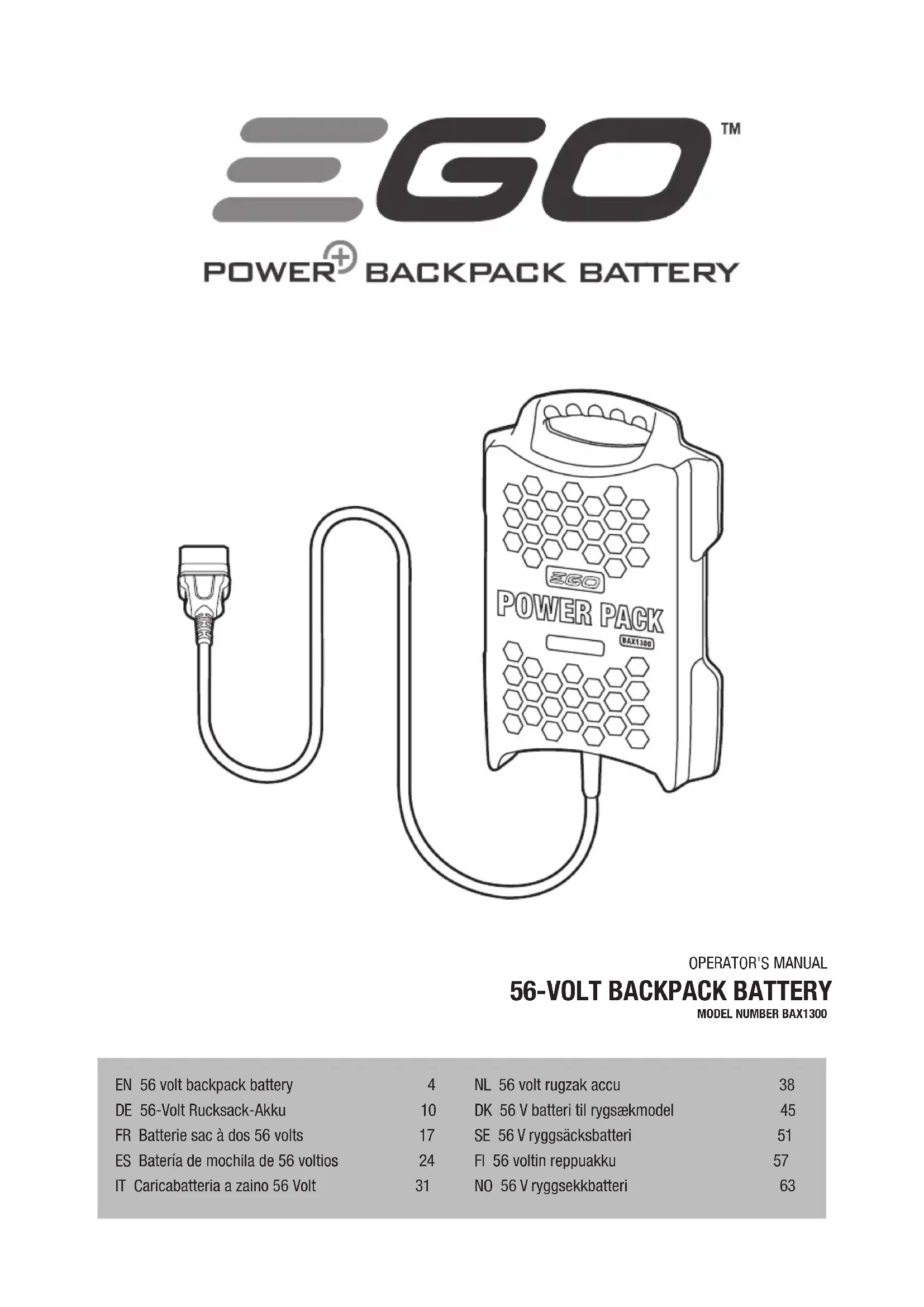 Veuillez consulter le site egopowerplus.com pour trouver l’ensemble des modalités et conditions de la politique de garantie EGO.BATERÍA DE MOCHILA DE 56 VOLTIOS — BAX1300