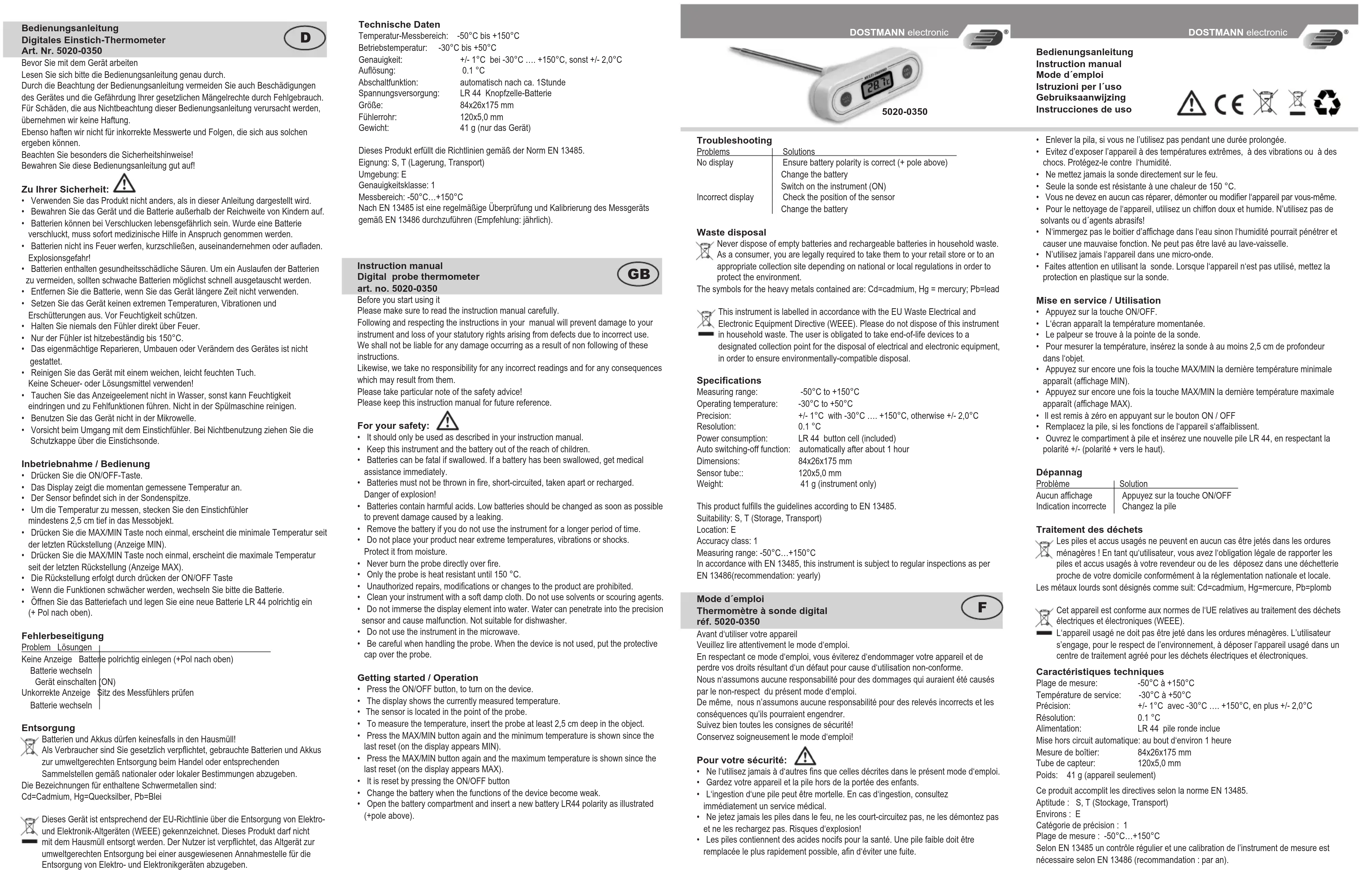| Type de produit | Thermomètre pour aliments |