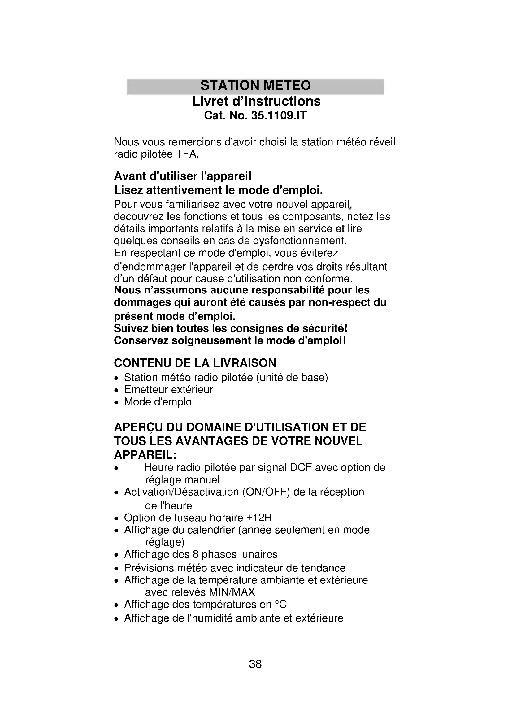 MODE D'EMPLOI 35.1109 TFA